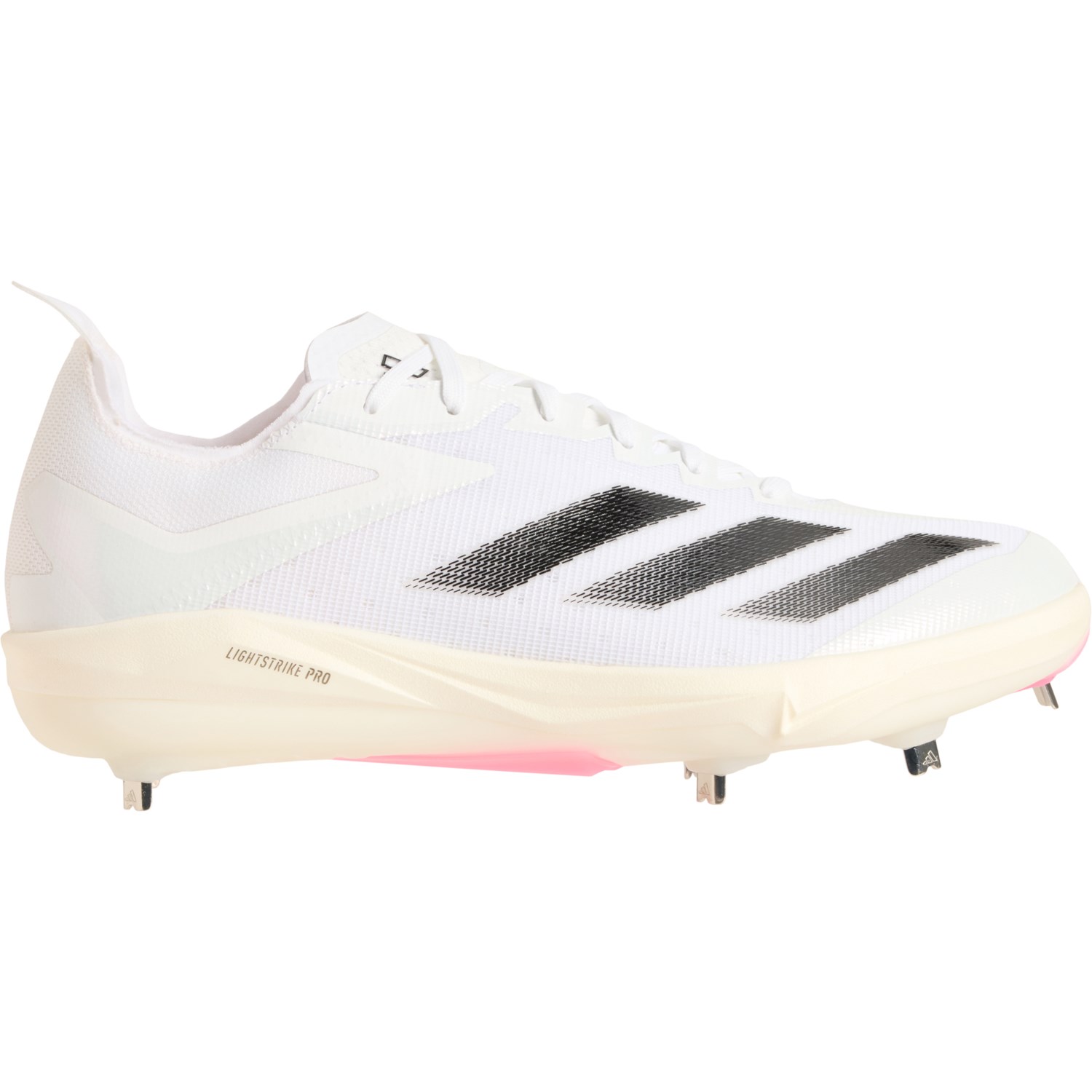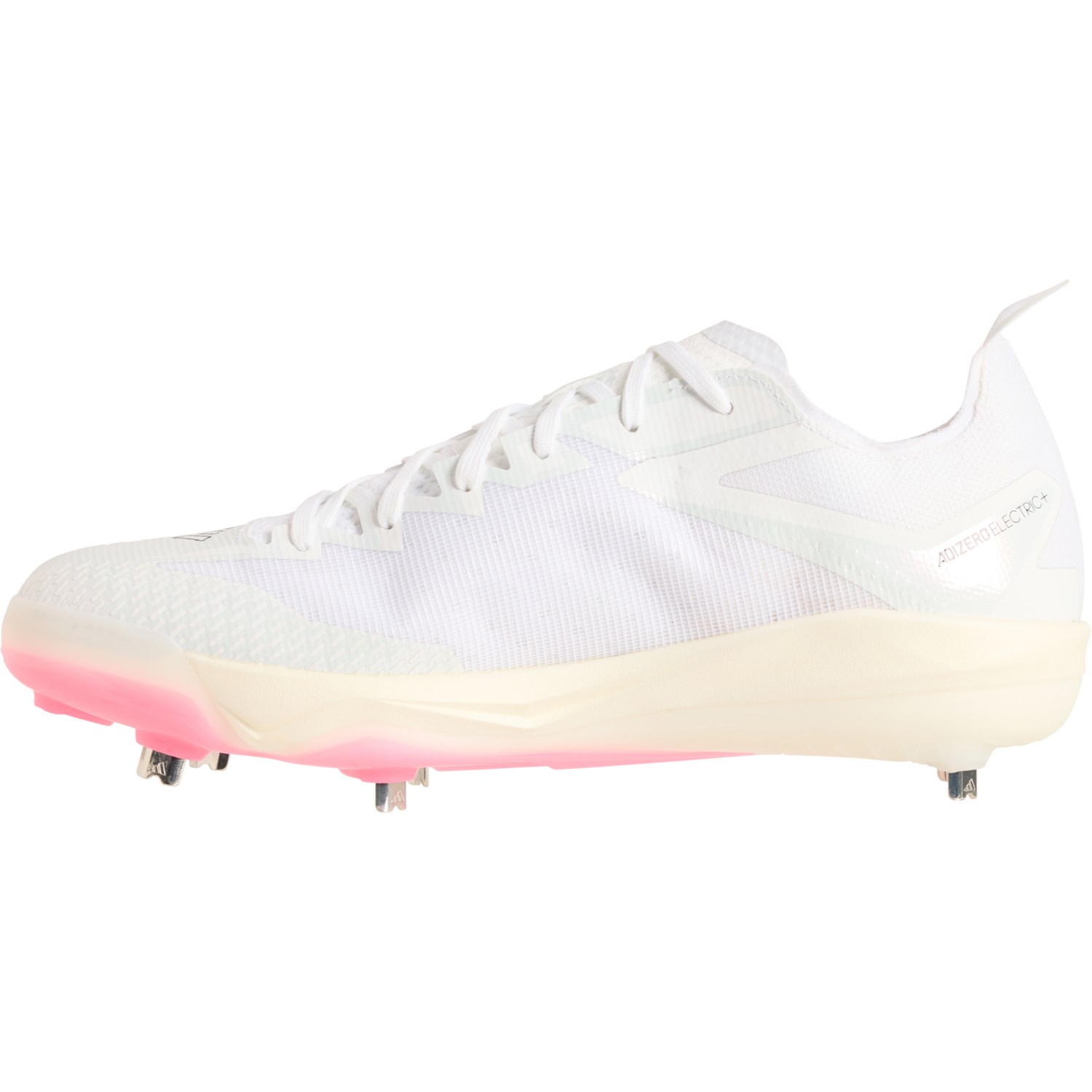 Closeout. You'll stay quick on your feet as you round the bases with adidas' Adizero® Electric+ BSB baseball cleats, crafted in breathable PRIMEKNIT® mesh with a supportive heel, responsive Lightstrike Pro midsole and lightweight synthetic outsole with strategically-placed molded metal cleats.
