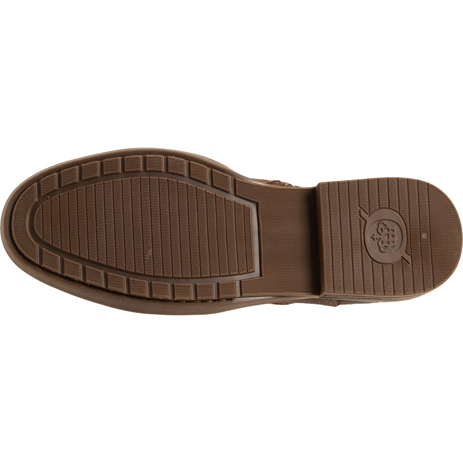 - High-traction, lightweight rubber outsole with stacked wood-finish wrapped heel