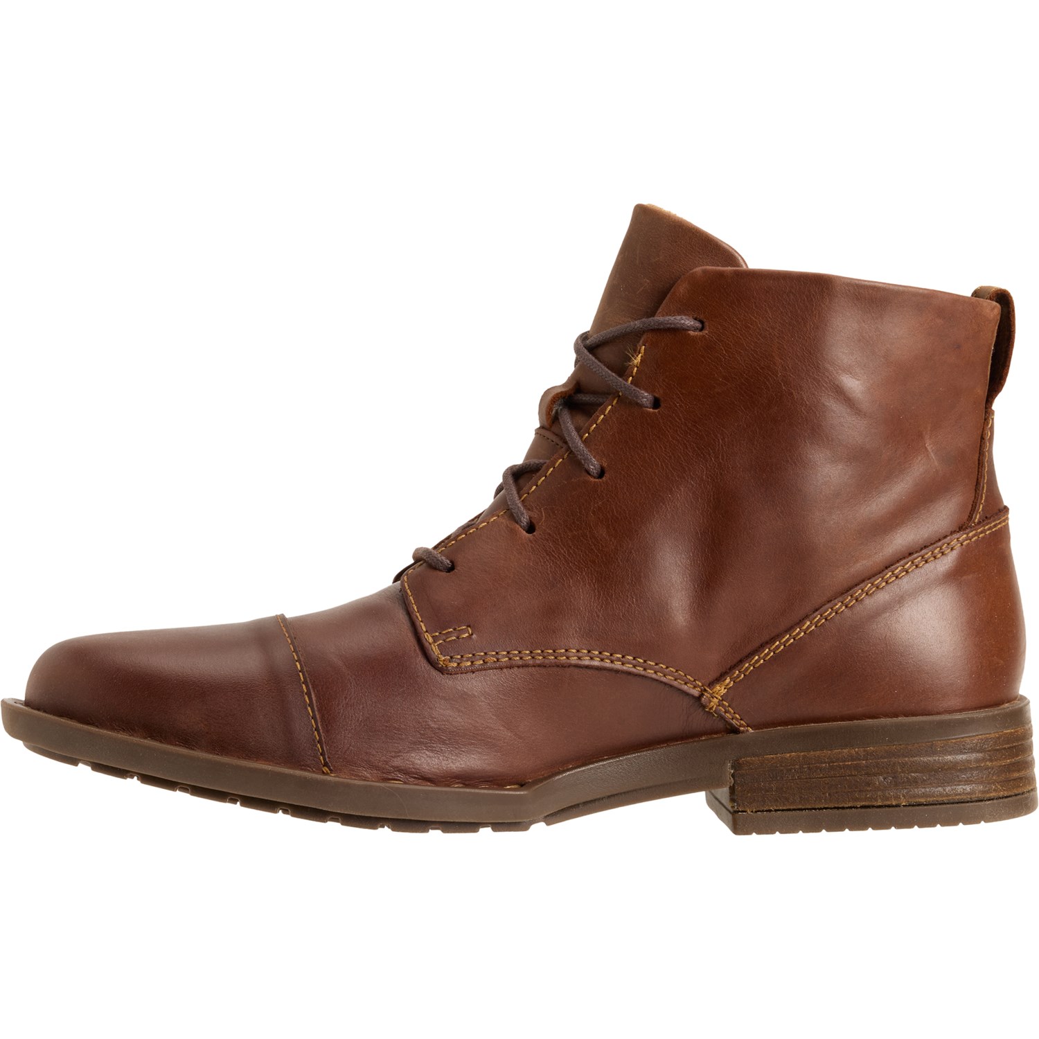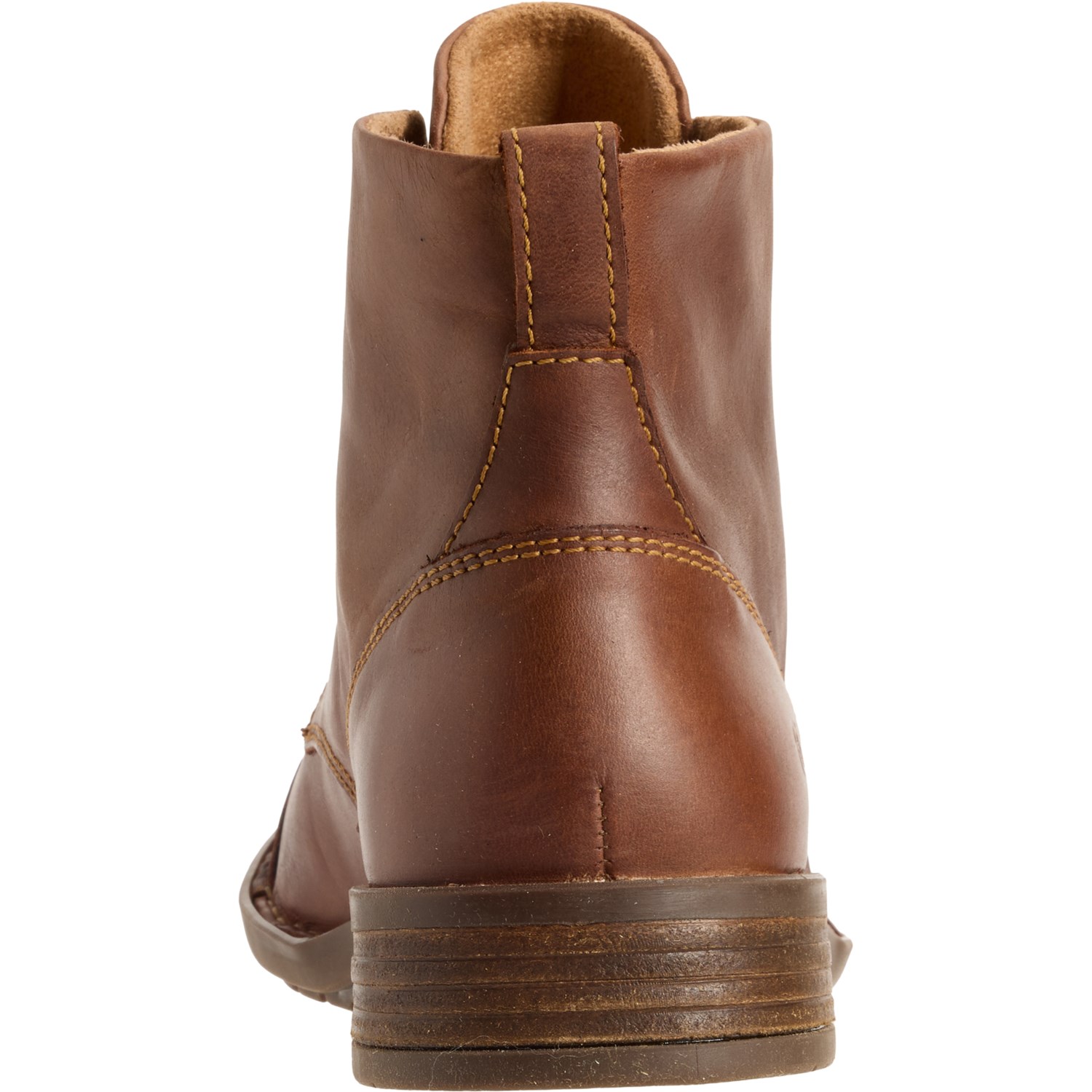Closeout. Born's Ryker boots are versatile and comfortable for all-day wear thanks to their leather construction, cushioned micro-fiber footbed and a high-traction rubber heel with a classic stacked wood-finish heel.