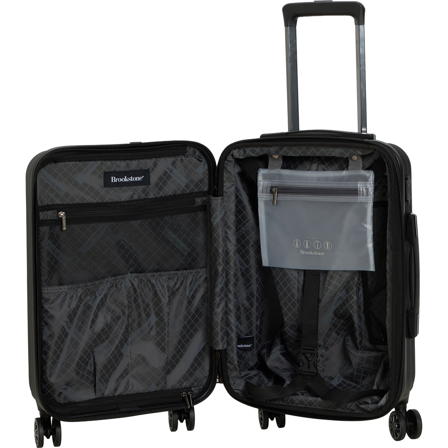 About Brookstone 21” Nelson Carry-On Spinner Suitcase - Hardside, Expandable, Black