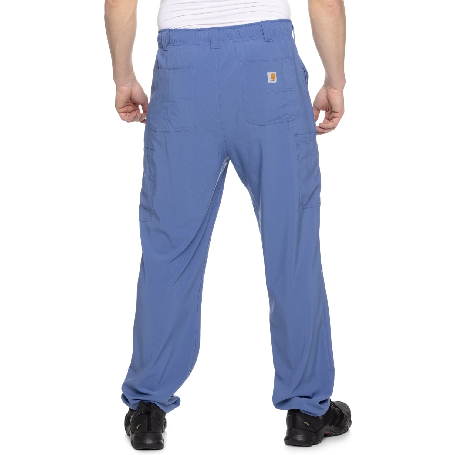 Closeout. Stay comfortable throughout your work day with Carhartt's Cross-Flex modern fit scrub pants, made from soft and stretchy micro ripstop fabric with wicking, fast-drying Force® technology, plenty of pockets for your pens and accessories and a movement-friendly fit.