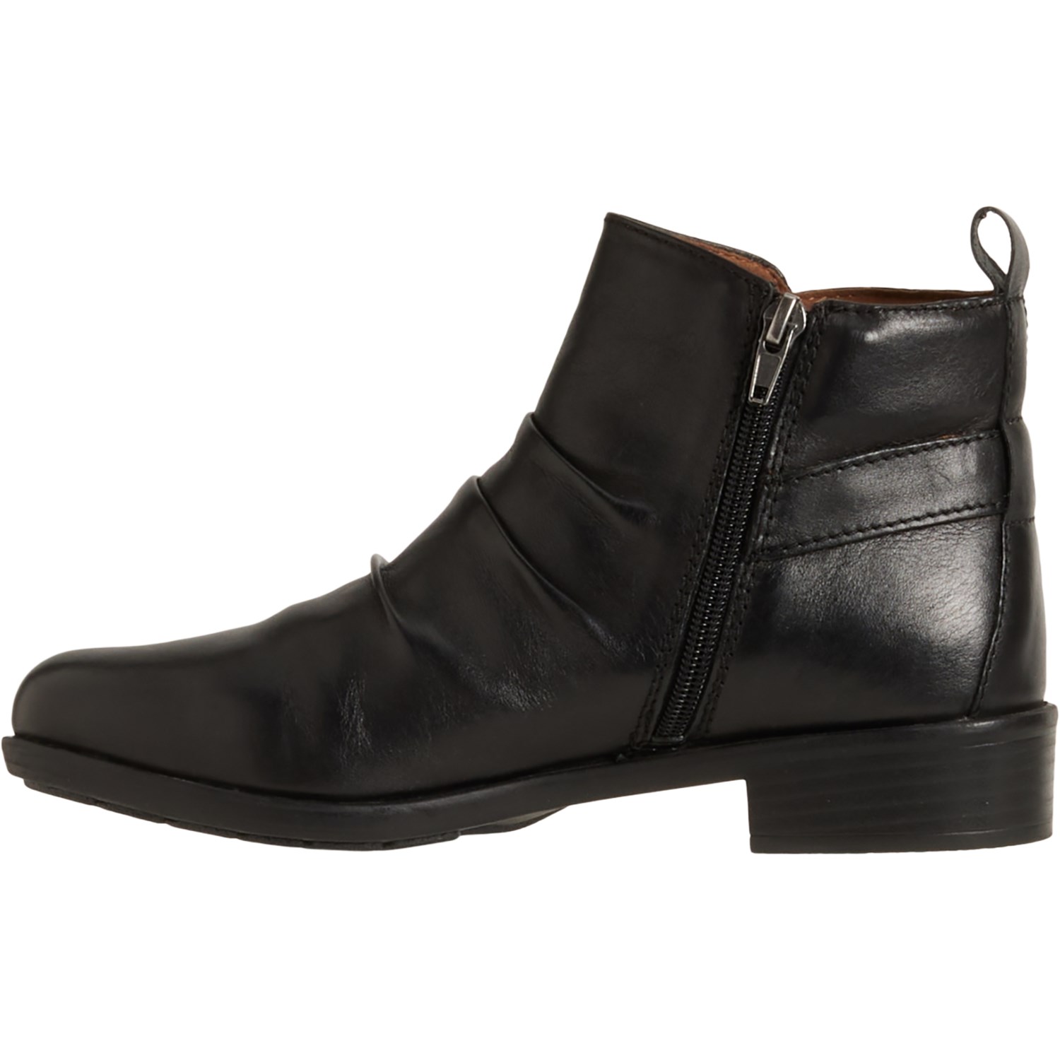 Closeout. Add an edgy vibe to your look with Cobb Hill's Nessa booties, crafted from leather with ruching detail at the vamp, side buckle accent and plenty of underfoot cushioning.