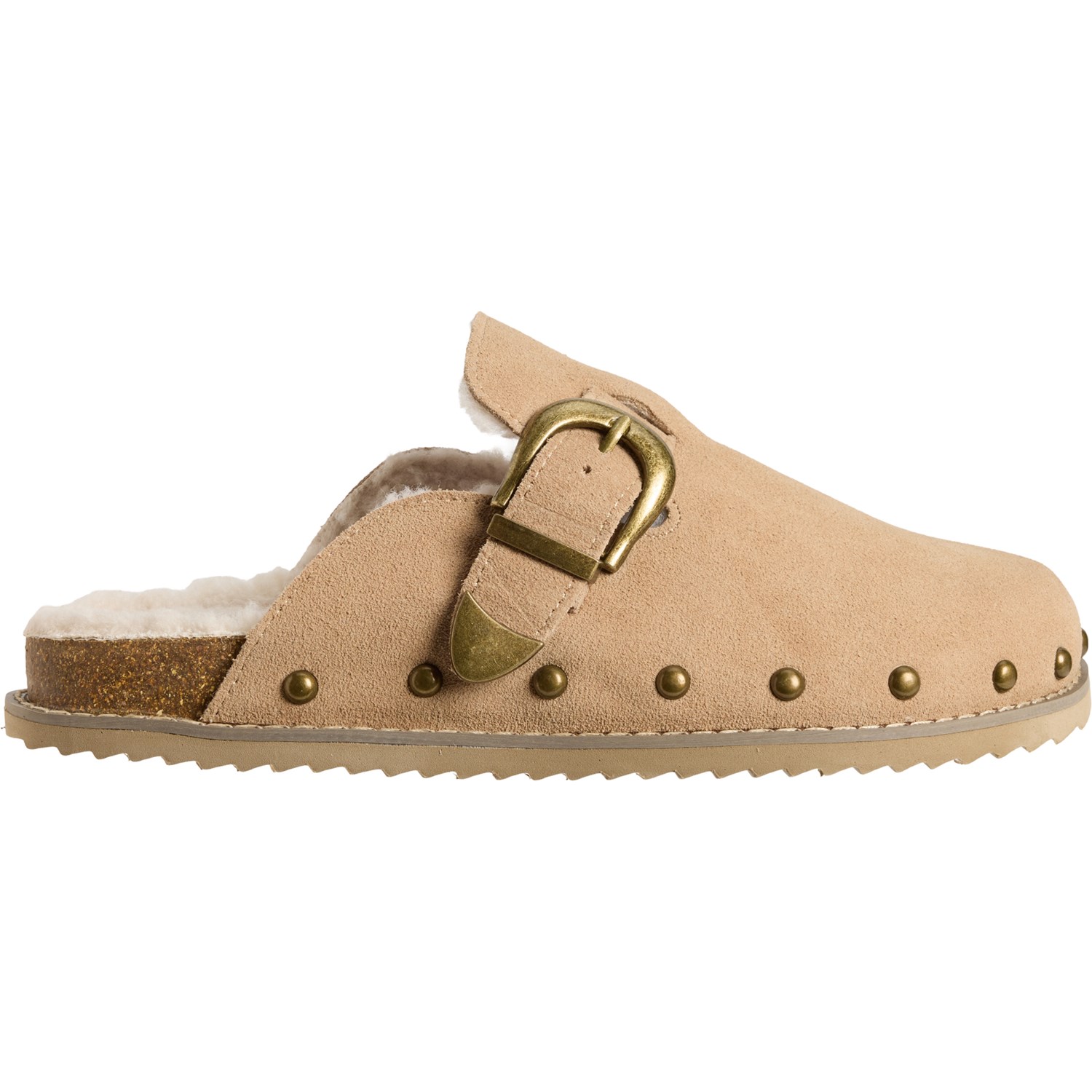 - Molded cork and memory foam footbed with faux fur cover