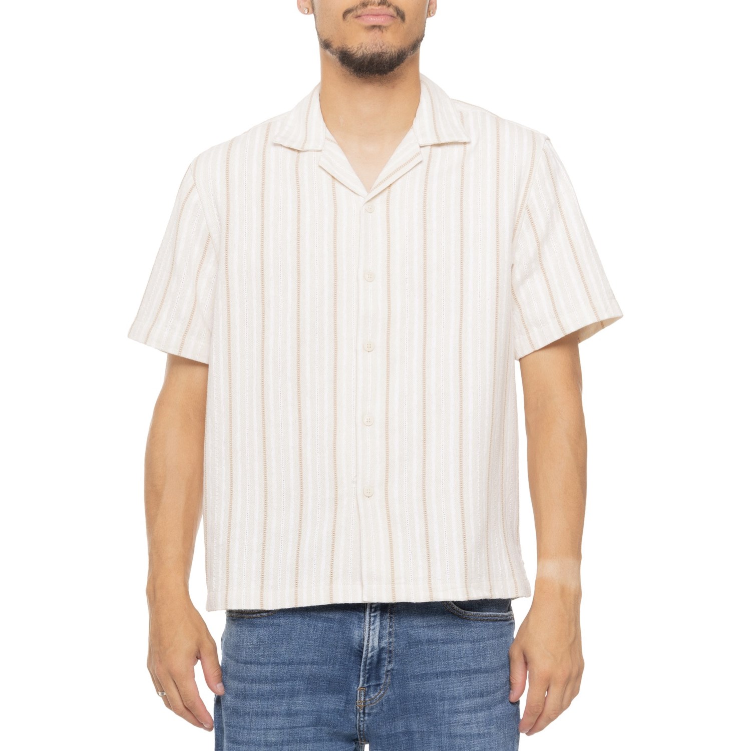 About DENIM & FLOWER Stripe Textured Shirt - Short Sleeve