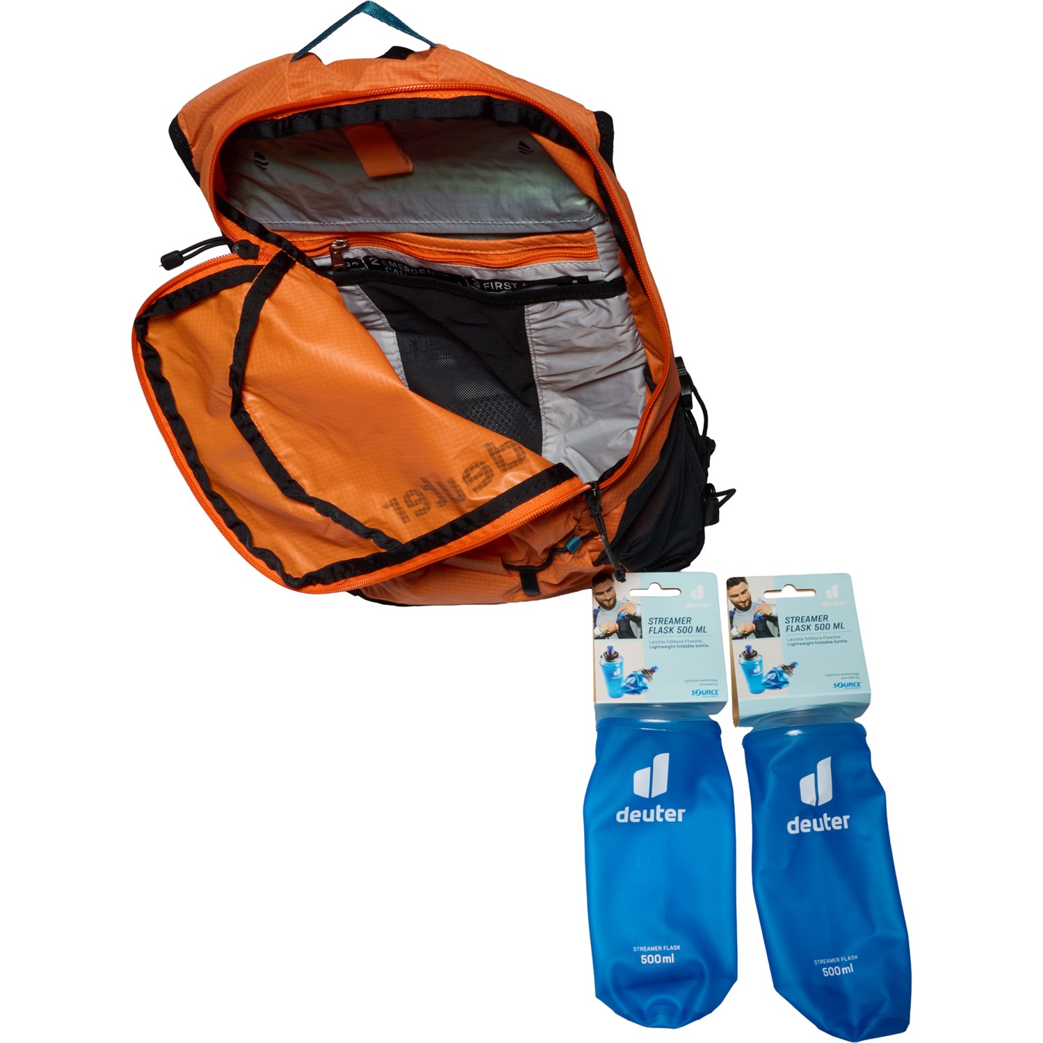 Closeout. Stay hydrated on training runs and all-day hikes with Deuter's Ascender hydration pack, designed with wide, vest-styled shoulder straps and close-fitting back for stability. Plus, it's compatible with a 2-liter reservoir and also comes with two soft flasks for quick access.