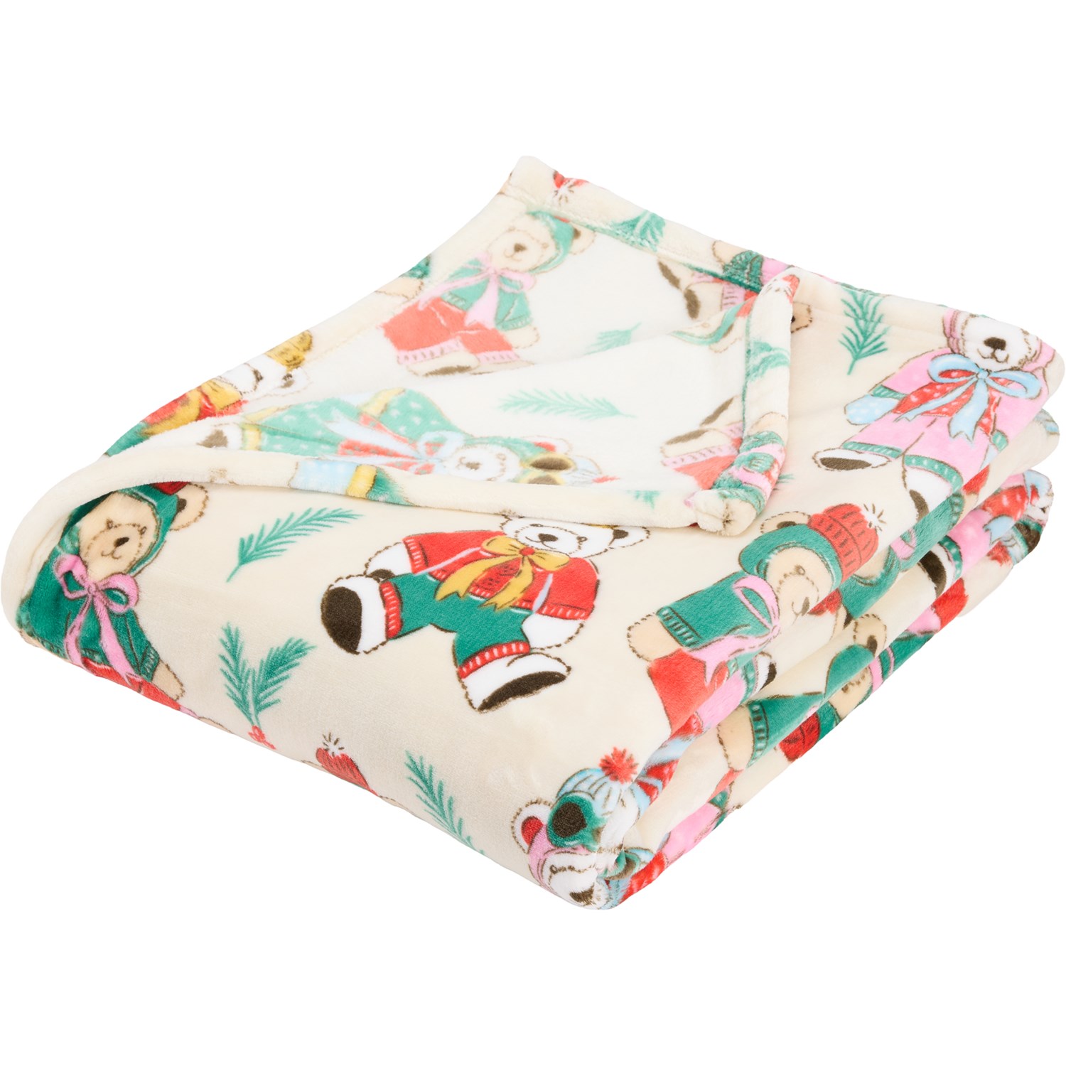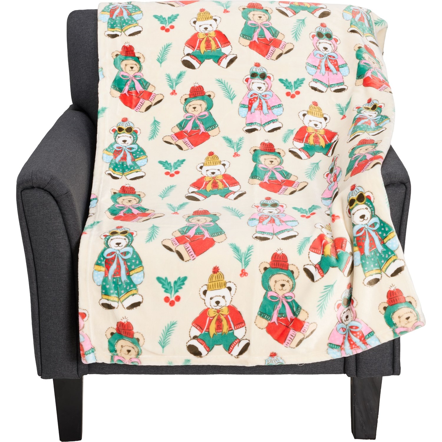 Excess. Cozy up your living space (and stay warm too) with EnVogue's Christmas Scarf Teddy Bears plush printed throw blanket.