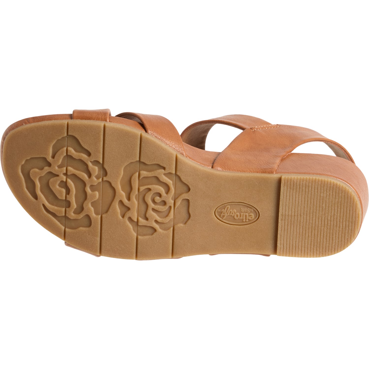 Closeout. You'll love the comfortable feel and sophisticated style of these Eurosoft by Sofft Rowe wedge sandals, crafted in synthetic leather with a cushioned footbed, wedge heel and flexible outsole.