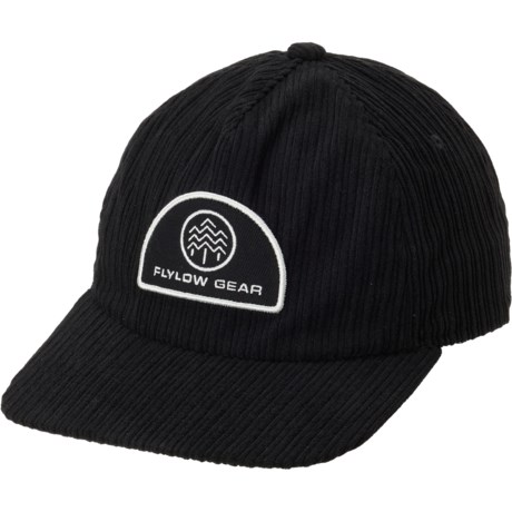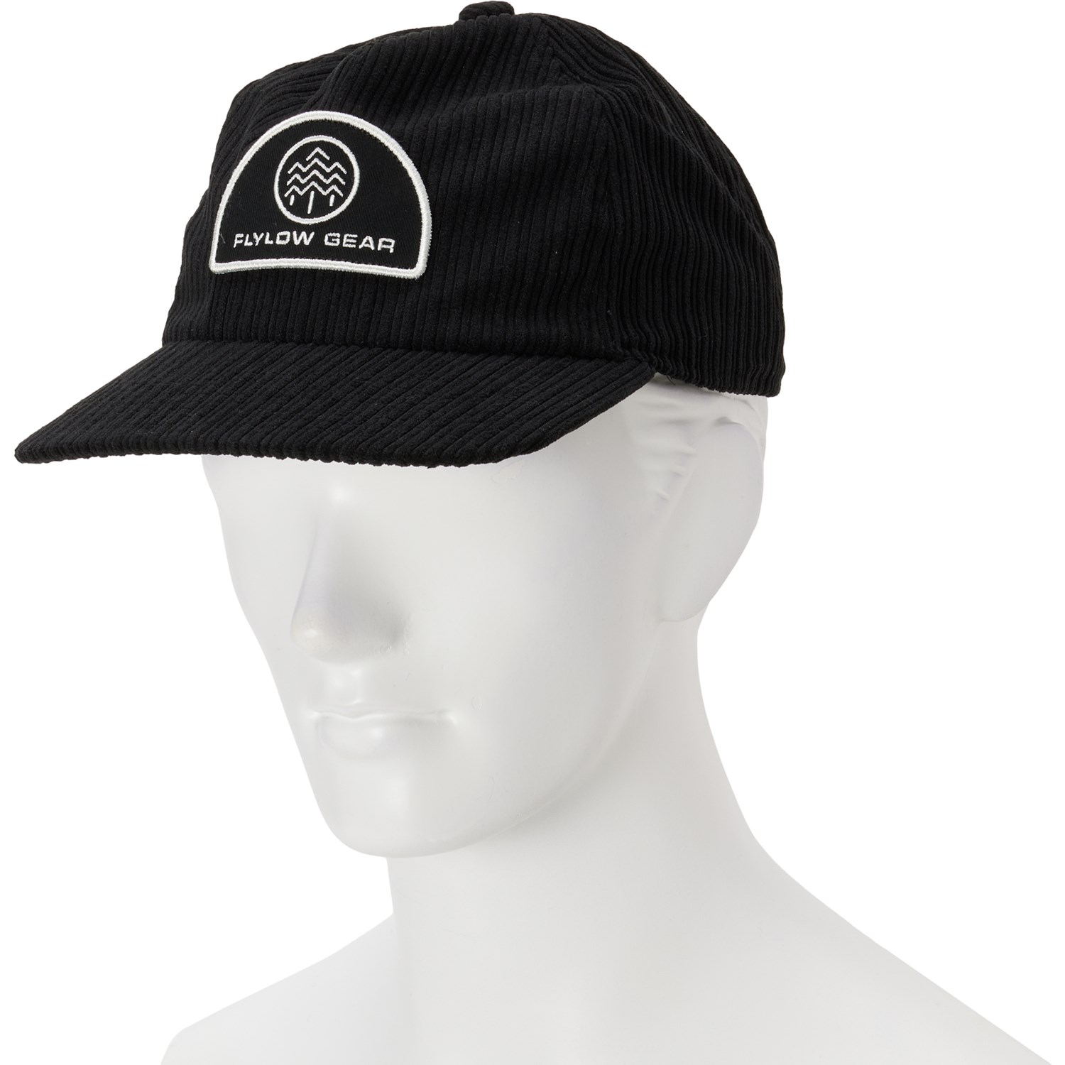 Closeout. Flylow's Rolo trucker hat offers classic ball-cap styling with a graphic logo on the front, breathable stretch-polyester corduroy construction and an adjustable back strap for a custom fit.
