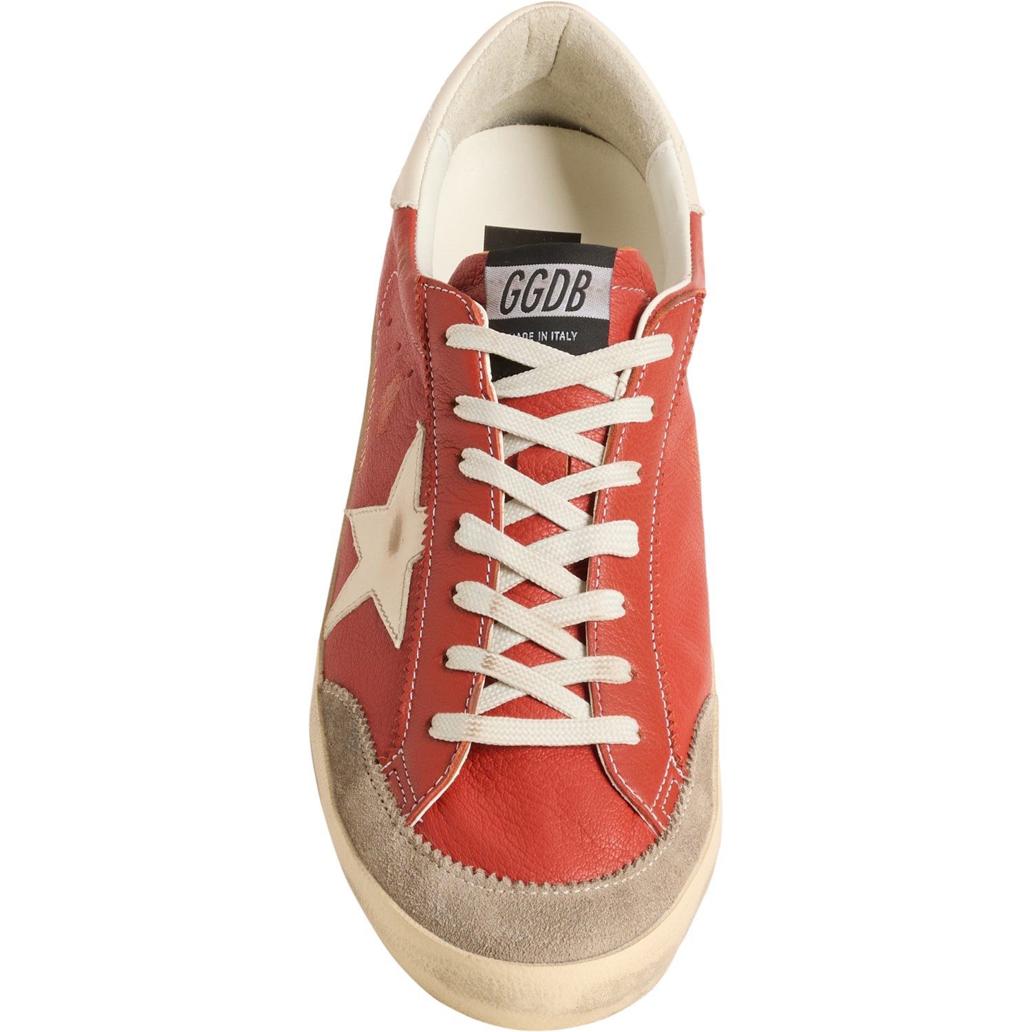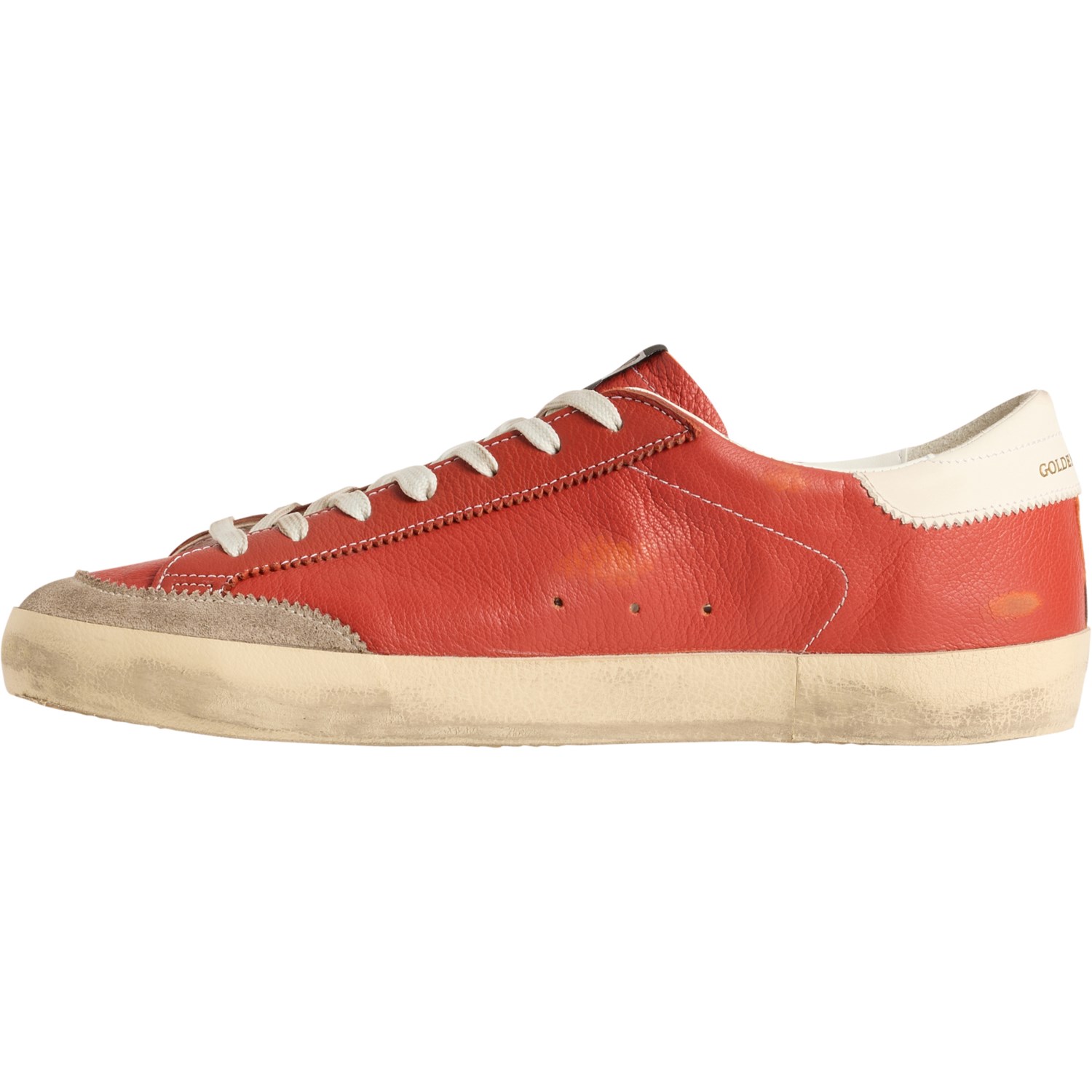 Closeout. Dream of days gone by or future adventures with these GOLDEN GOOSE Super-Star Classic sneakers, made from distressed leather with a star patch for a vintage look. These shoes are handcrafted in Italy and prepare you for your journey with a removable cushioned footbed, breathable side grommets and a durable rubber outsole.