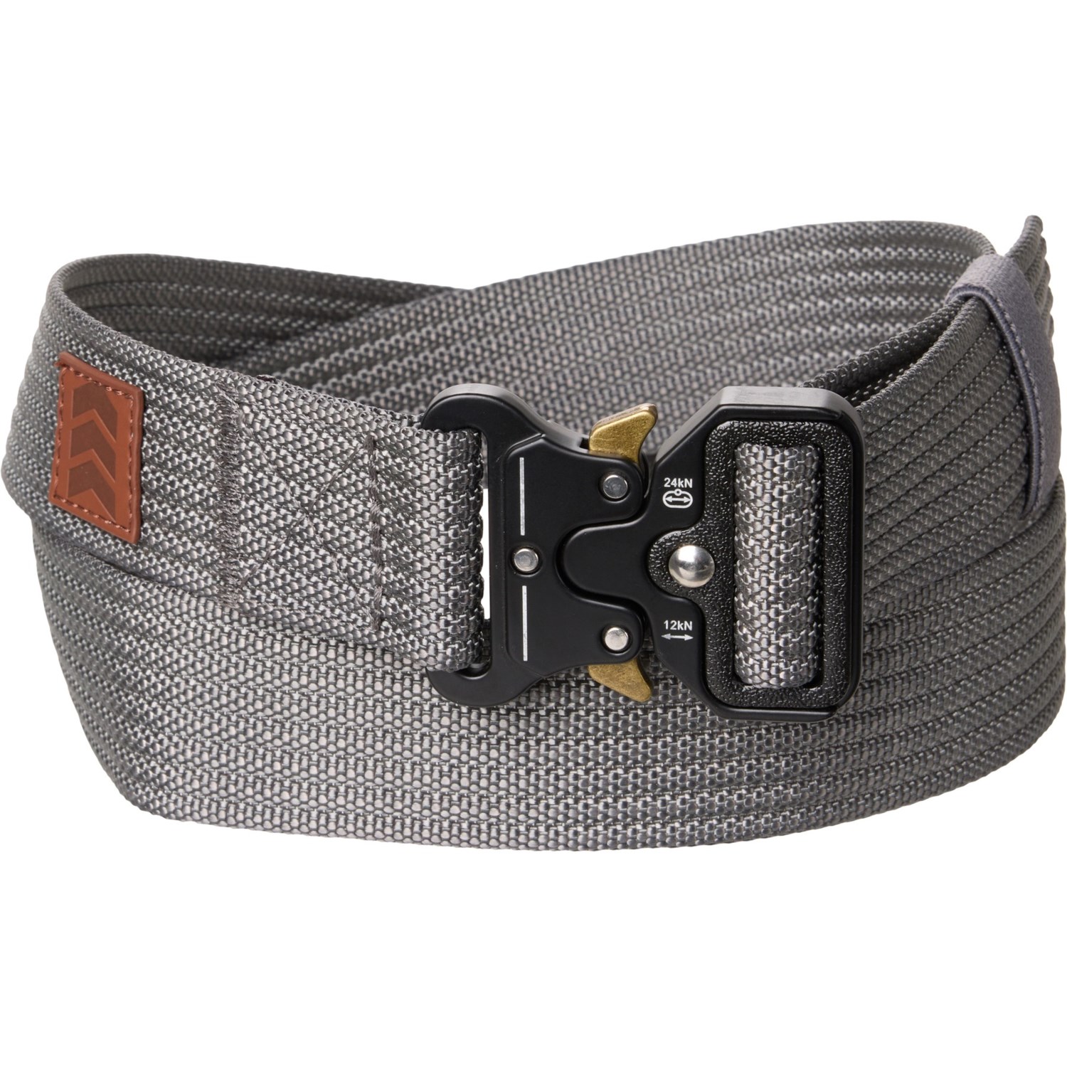 Closeout. Keep your pants hitched up at work or at play with HIGHLAND TACTICAL's Leather Patch belt, crafted from durable nylon webbing with reinforced stitching.
