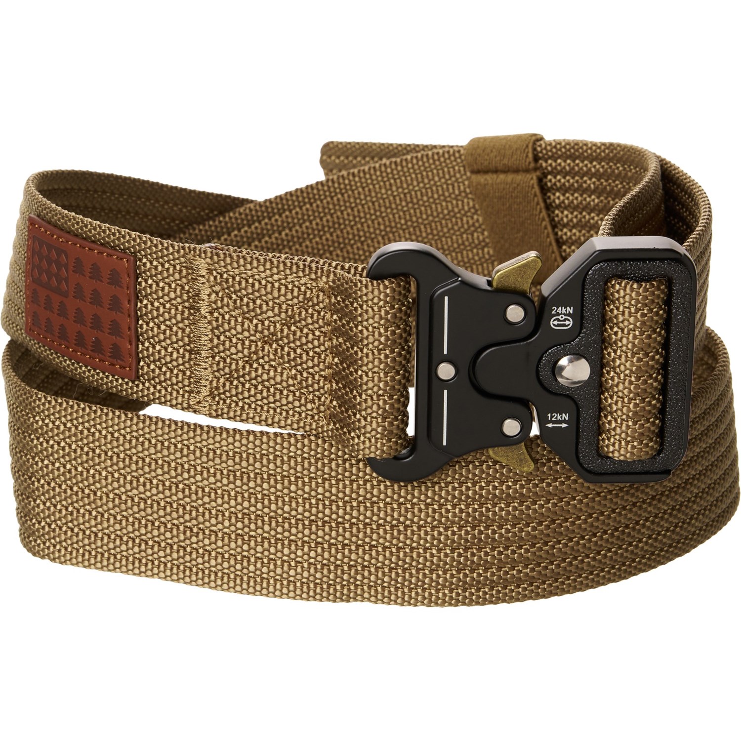 Closeout. Keep your pants hitched up at work or at play with HIGHLAND TACTICAL's Leather Patch belt, crafted from durable nylon webbing with reinforced stitching.