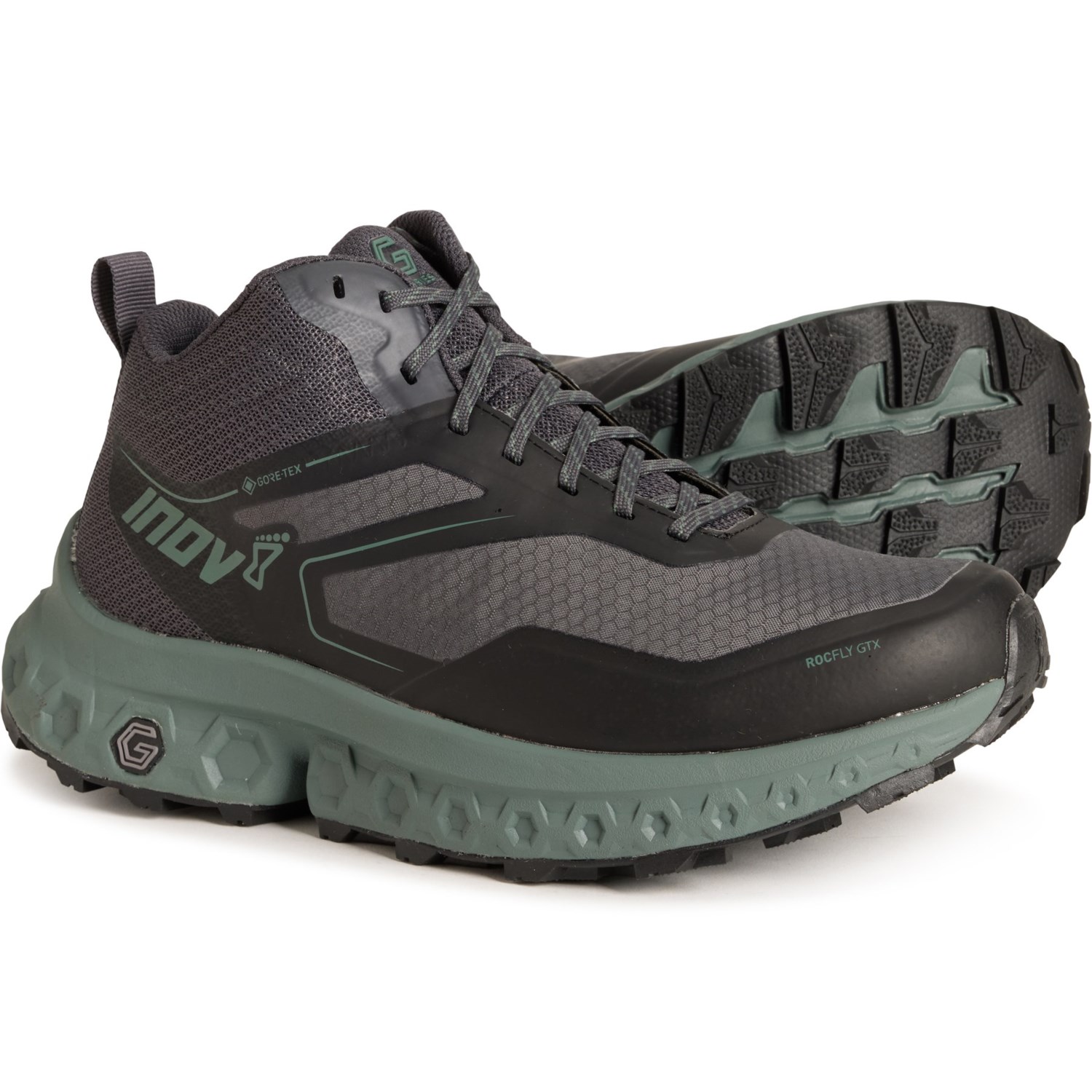 Closeout. Take on any terrain in these Inov-8 Rocfly G 390 hiking shoes, crafted from breathable mesh with Gore-Tex® waterproof technology, a cushioned foam midsole and Graphene Grip outsole.