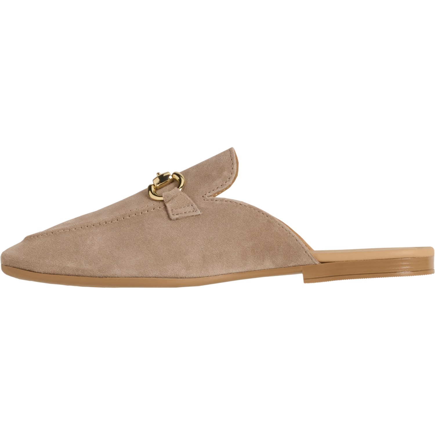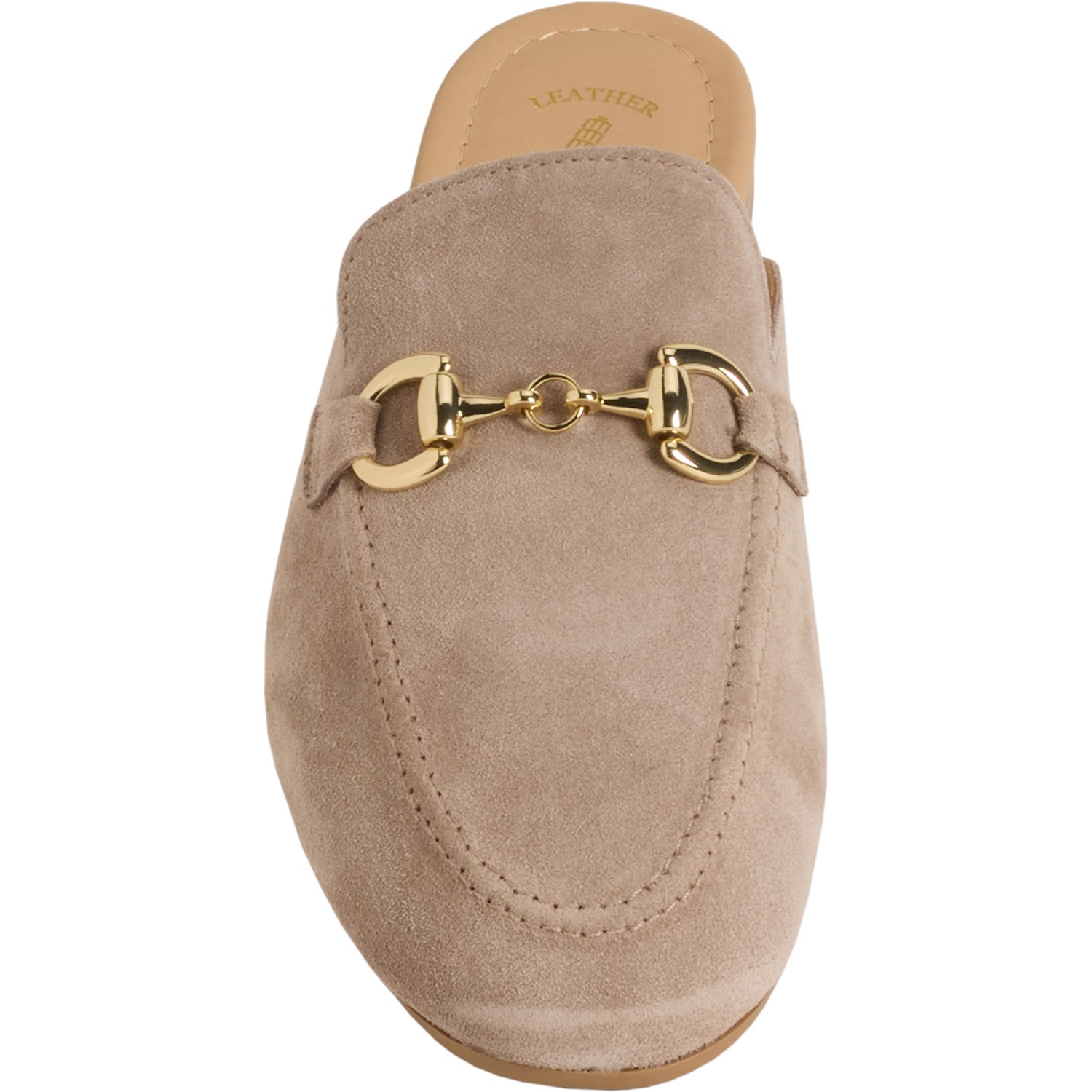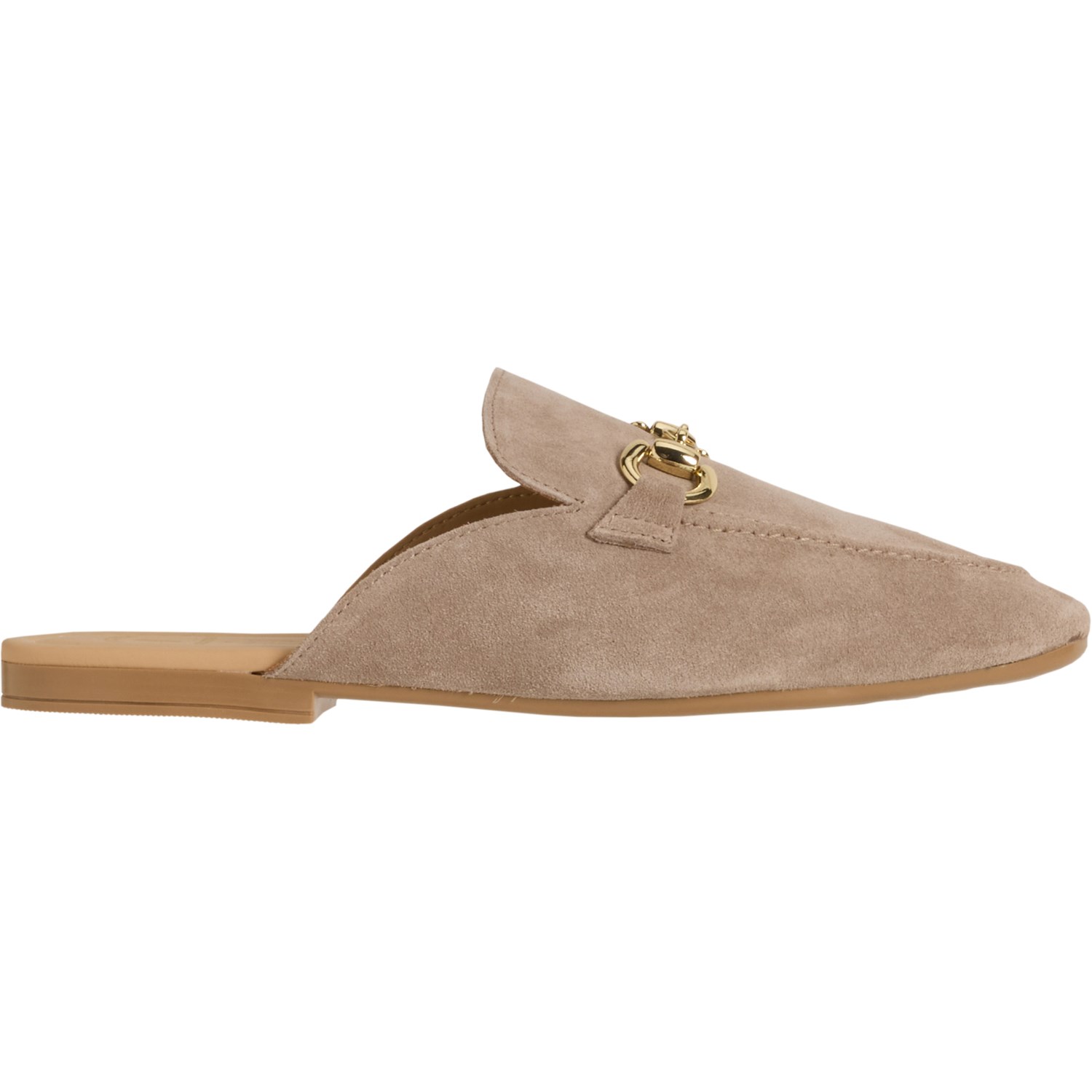 Excess. Add subtle sophistication to your casual look with these ITALIAN SHOEMAKERS LEATHER COLLECTION Elara mule shoes, crafted from suede with a goldtone horsebit accent.