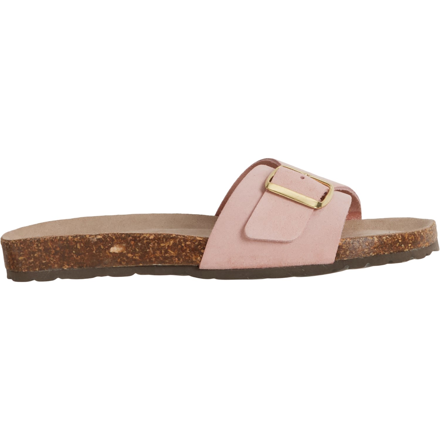 - Molded cork footbed with soft suede top cover