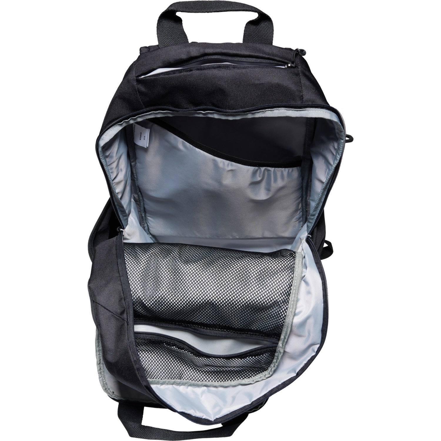- Top-loading main compartment with zip closure