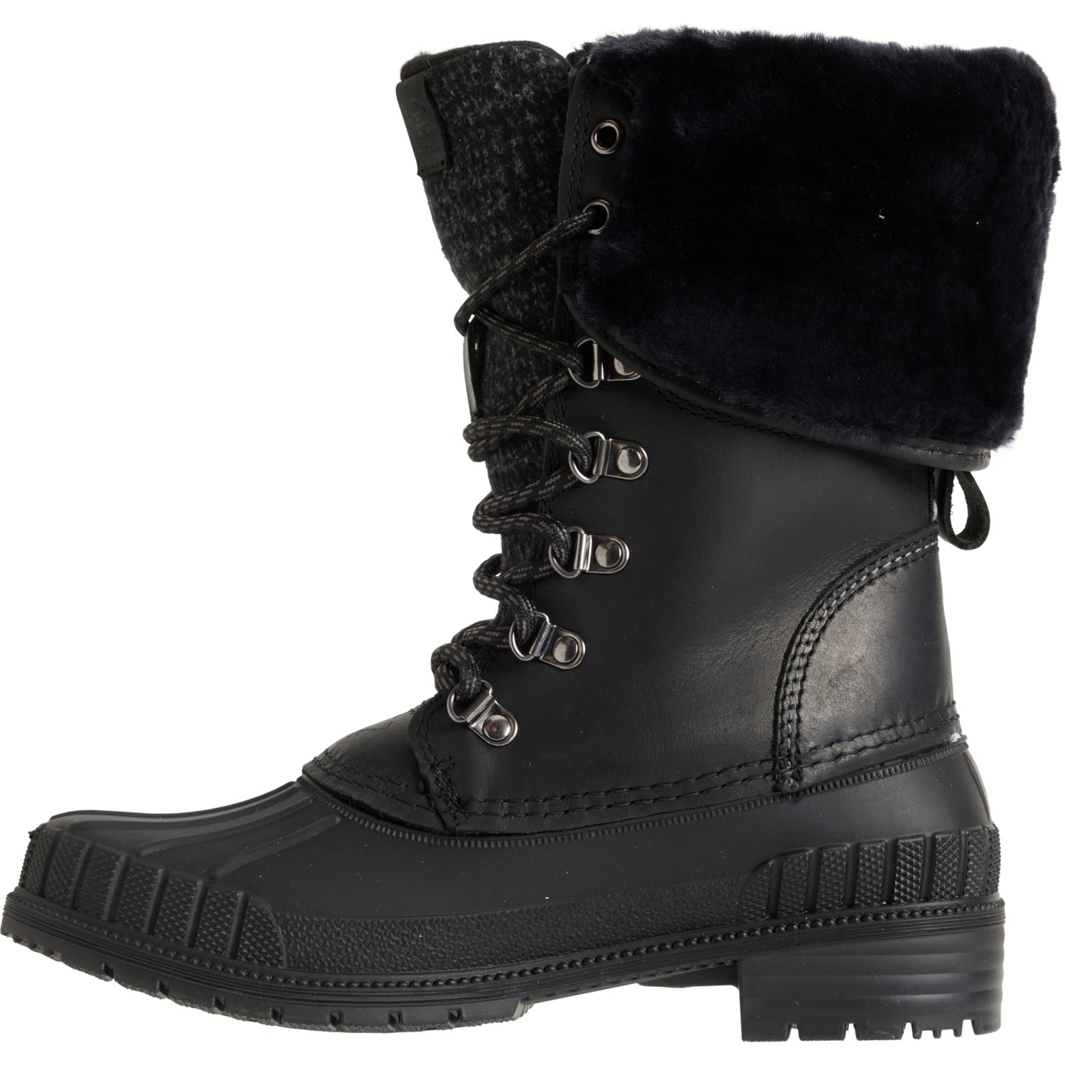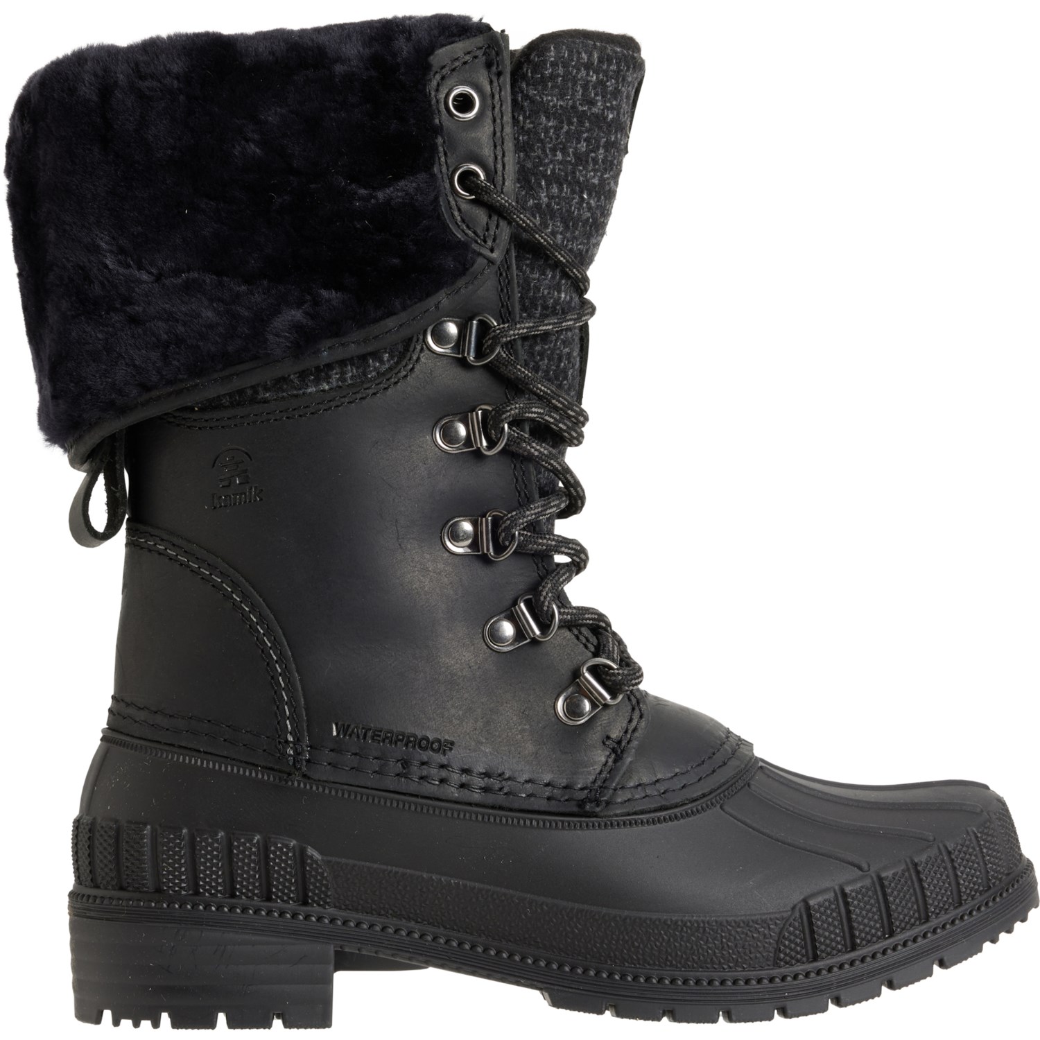 Closeout. Stay comfortable as you step out in wintry conditions with Kamik's Sienna 2 tall pac boots, crafted from smooth leather with sweater-knit panels, a rubber foot, shearling lining and trim, waterproof construction and warm insulation.