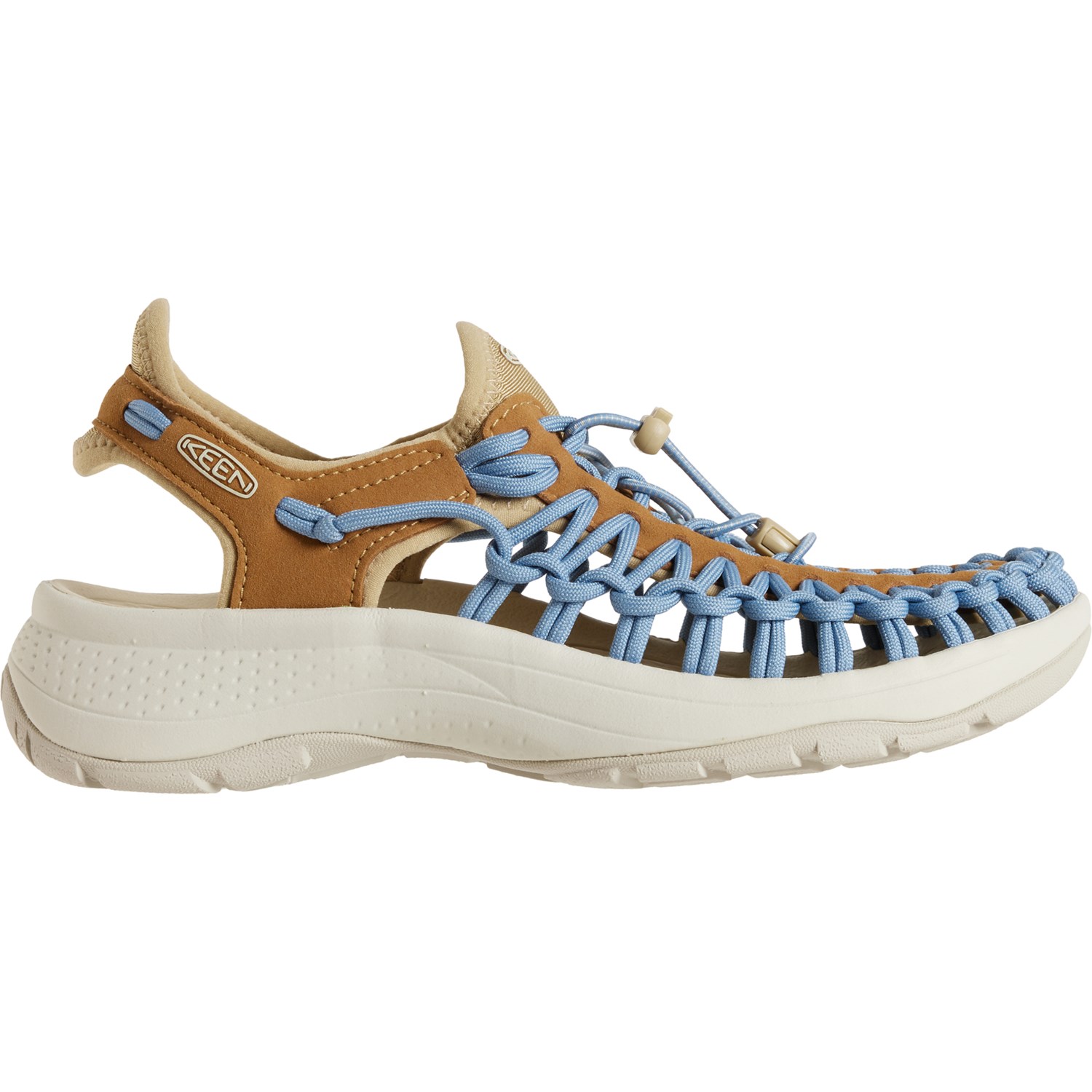 Closeout. Keen's Uneek Astoria sport sandals will be your new summer go-to with a light, breathable, fast-drying bungee upper, comfy polyurethane insole and lightweight, grippy outsole.