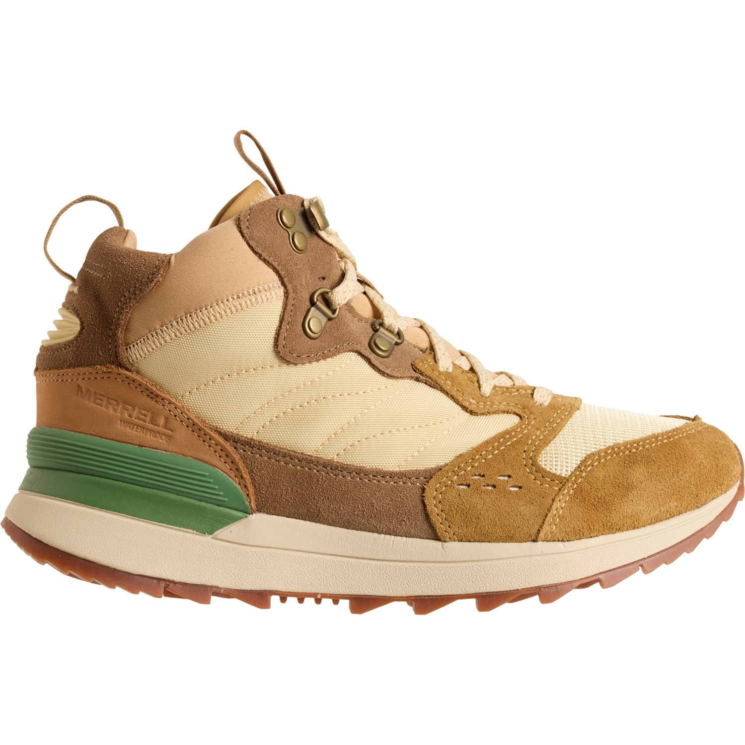 Closeout. Take on new trails in confidence with Merrell's Alpine 83 Sneaker Recraft Mid boots, made from durable waterproof materials with a neoprene stretch collar, cushioned footbed and grippy, lugged outsole.