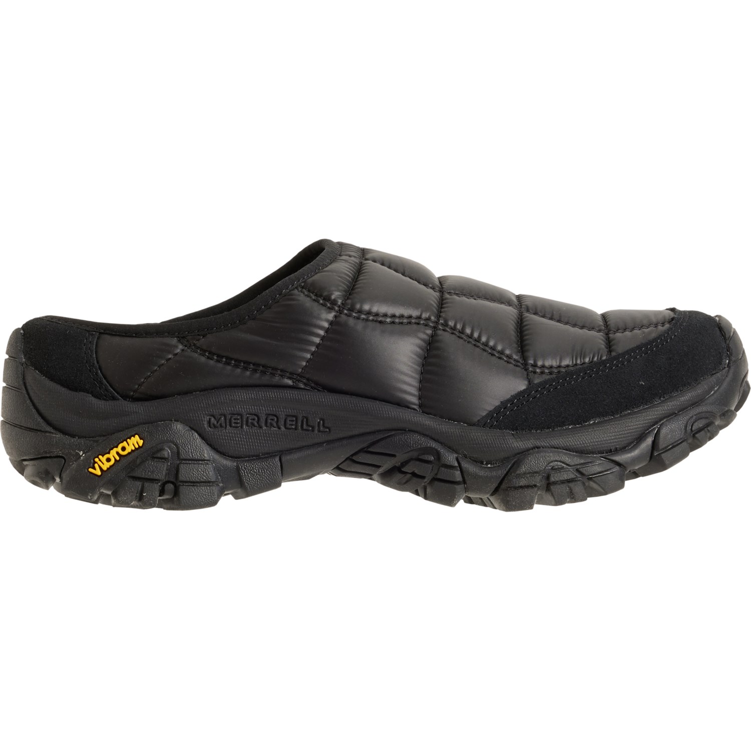 Closeout. From the campsite to errands in town, you'll step comfortably with Merrell's Moab 2 quilted slide shoes thanks to their quilted construction, cushioned footbed and grippy Vibram® TC5+ rubber outsole.
