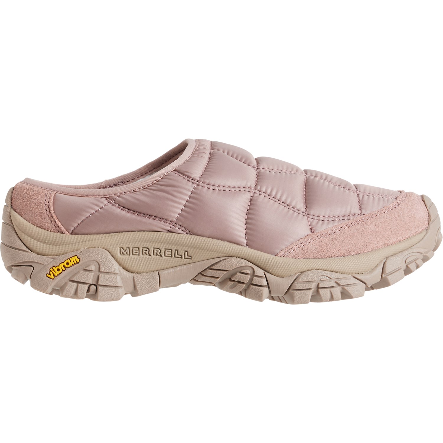 Closeout. From the campsite to errands in town, you'll step comfortably with Merrell's Moab 2 quilted slide shoes thanks to their quilted construction, cushioned footbed and grippy Vibram® TC5+ rubber outsole.