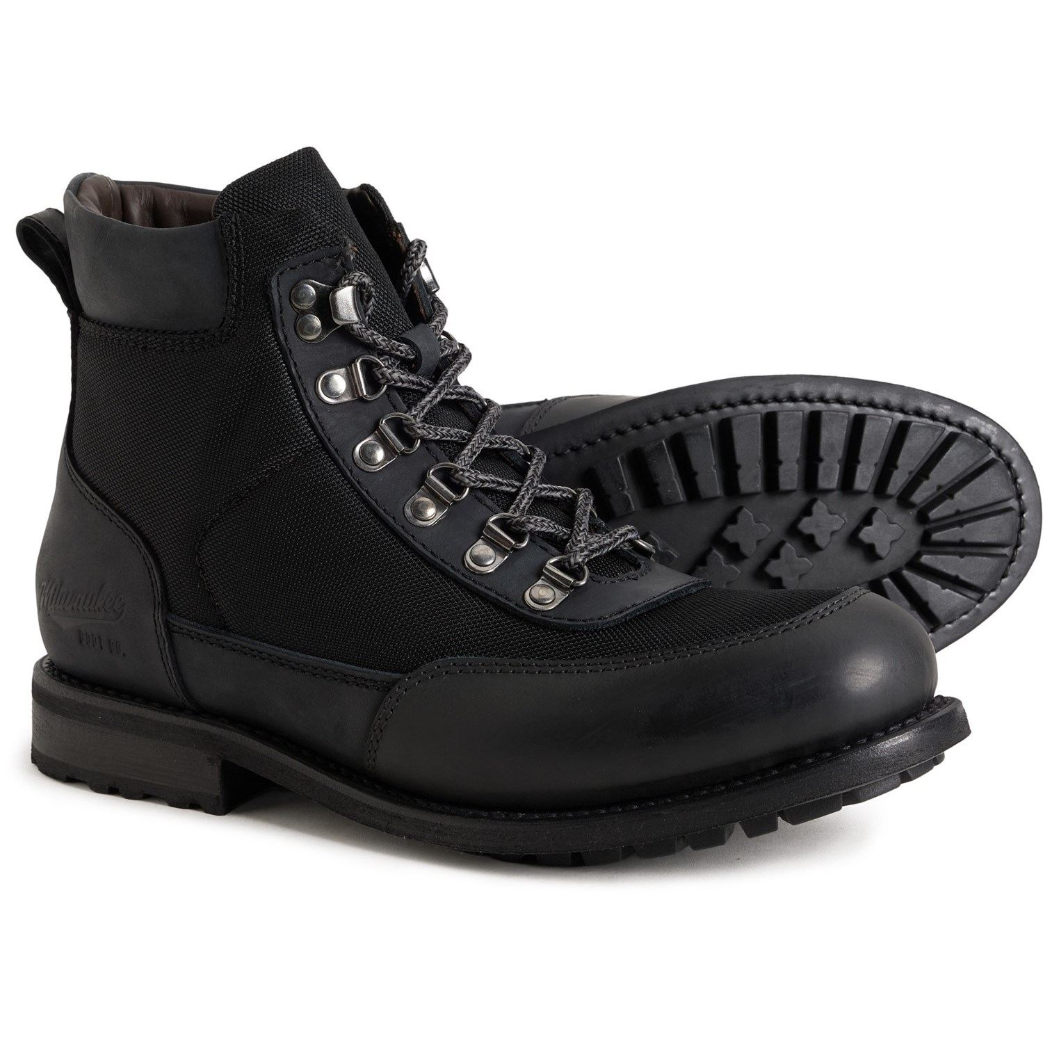 Closeout. Whether you're navigating urban streets or wandering off road, MILWAUKEE BOOT COMPANY's Kilbourn boots keep you stepping steadily with their leather and twill mesh upper, underfoot cushioning and grippy rubber outsole.