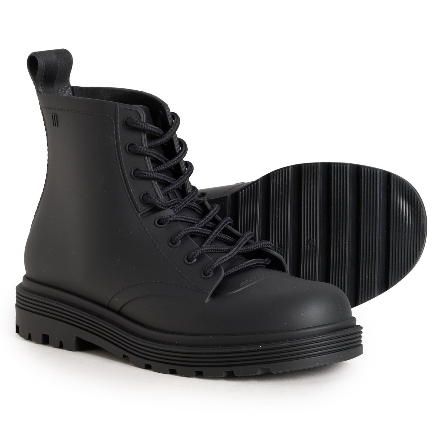Closeout. These MINI MELISSA Coturno boots are crafted from rubber jelly with a grippy rubber outsole that's perfect for rainy days.