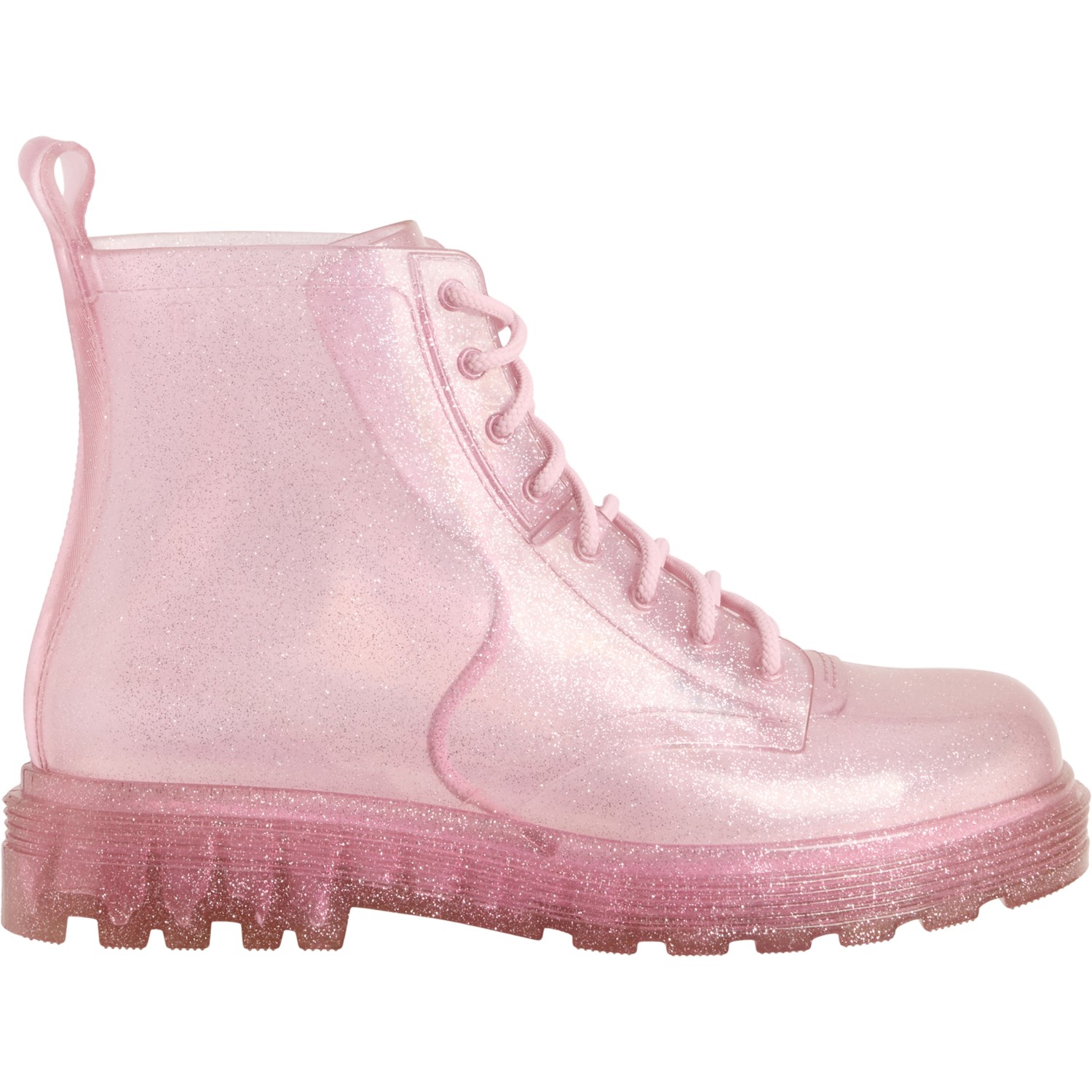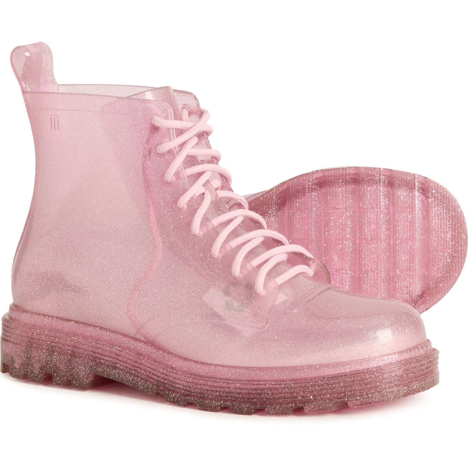 Closeout. These MINI MELISSA Coturno boots are crafted from rubber jelly with a grippy rubber outsole that's perfect for rainy days.