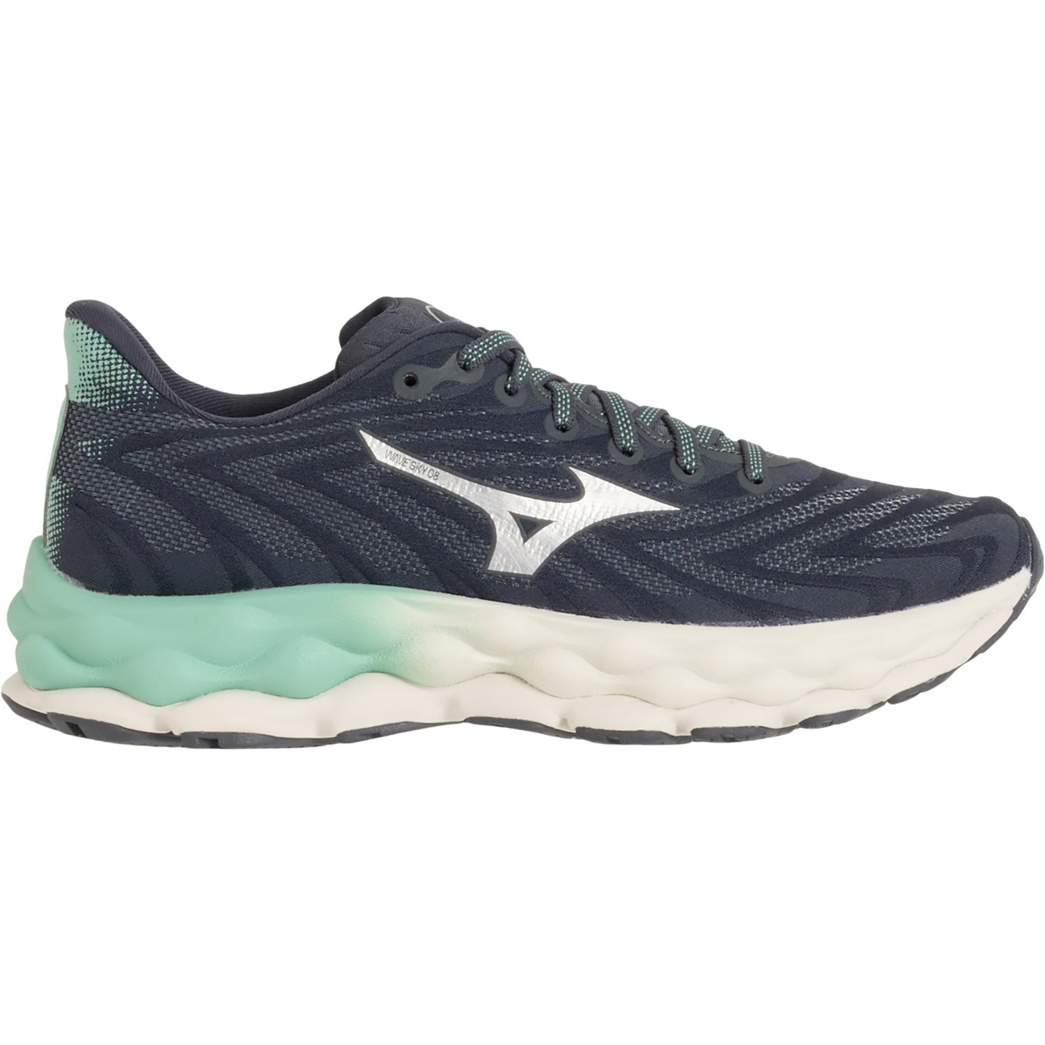 Closeout. You'll be ready to hit the ground running with Mizuno's Wave Sky 8 running shoes, crafted in breathable materials with a resilient MIZUNO ENERZY® NXT foam midsole, energy-dispersing MIZUNO WAVE® technology and a grippy, durable X10 carbon rubber outsole.