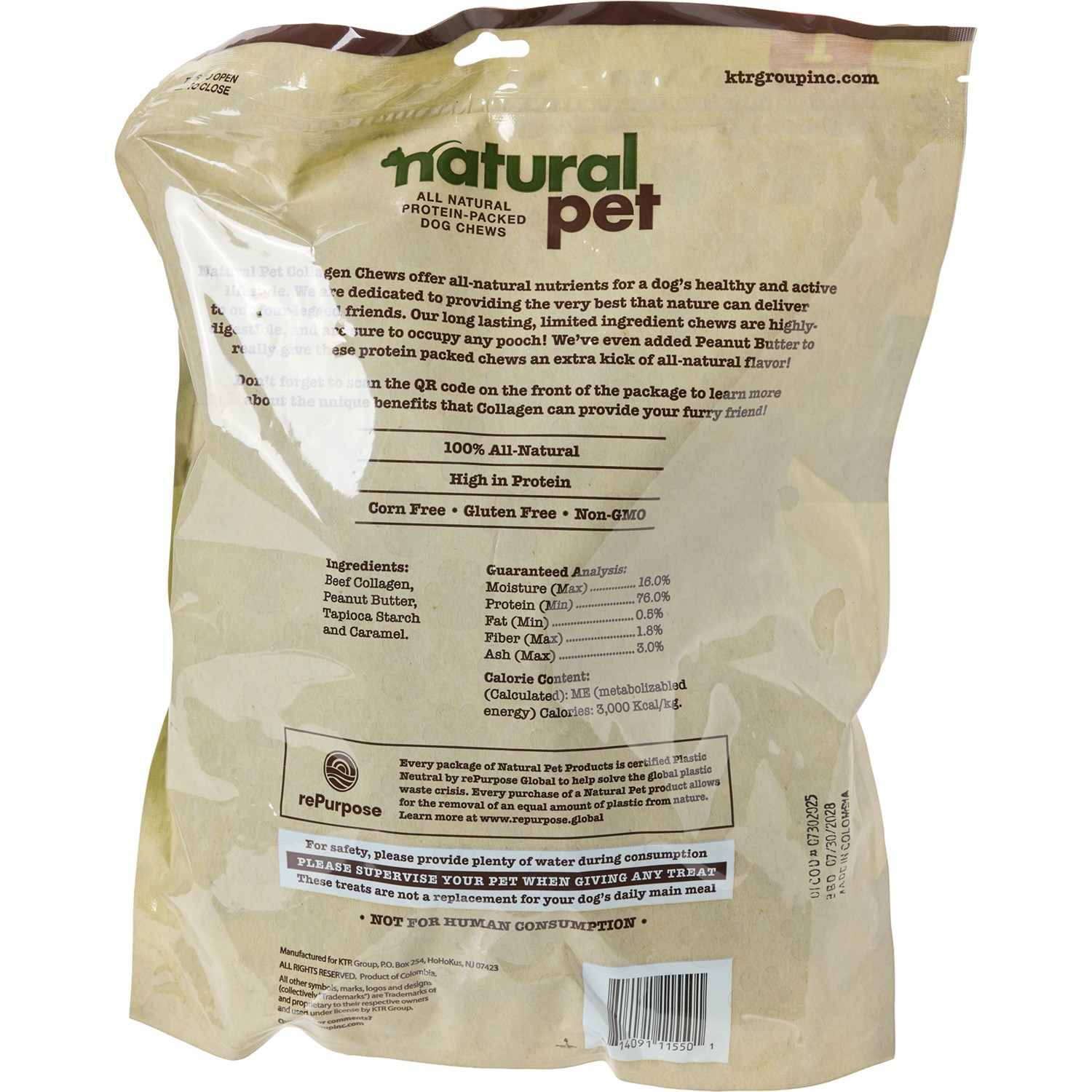 - Made with beef collagen, peanut butter, tapioca starch and caramel