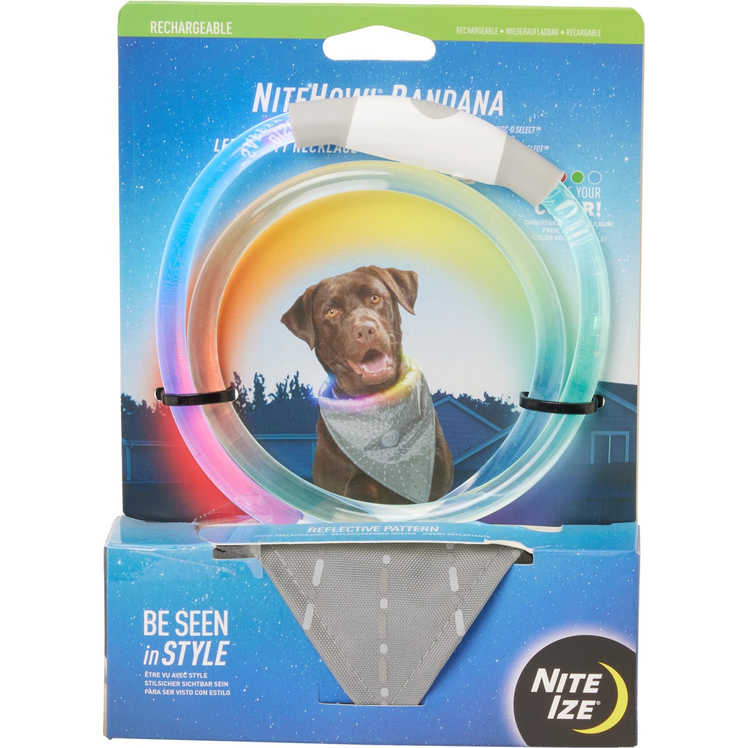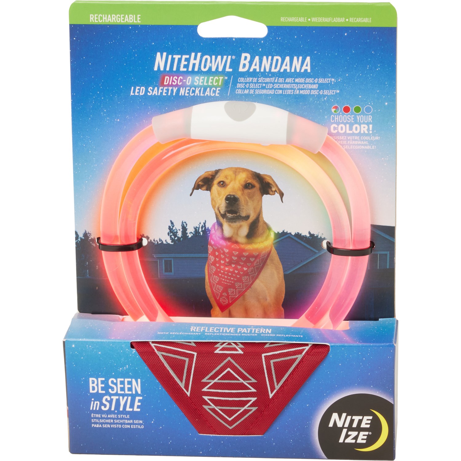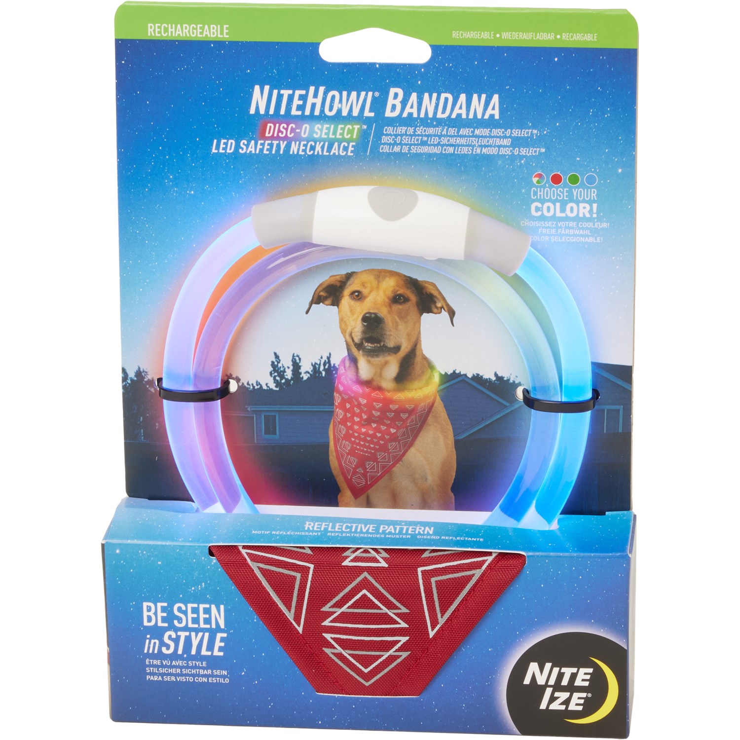 Closeout. Make sure your pup is visible with this Nite Ize NiteHowl bandana LED safety necklace, featuring color-changing Disc-O Select technology and a detachable washable bandana.