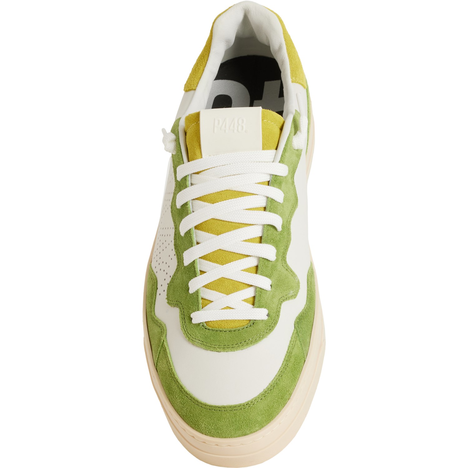 Closeout. Start your weekend off on the right foot with P448's Bali lace-up sneakers, crafted in leather and suede with a cushioned footbed, grippy outsole and classic sporty style.