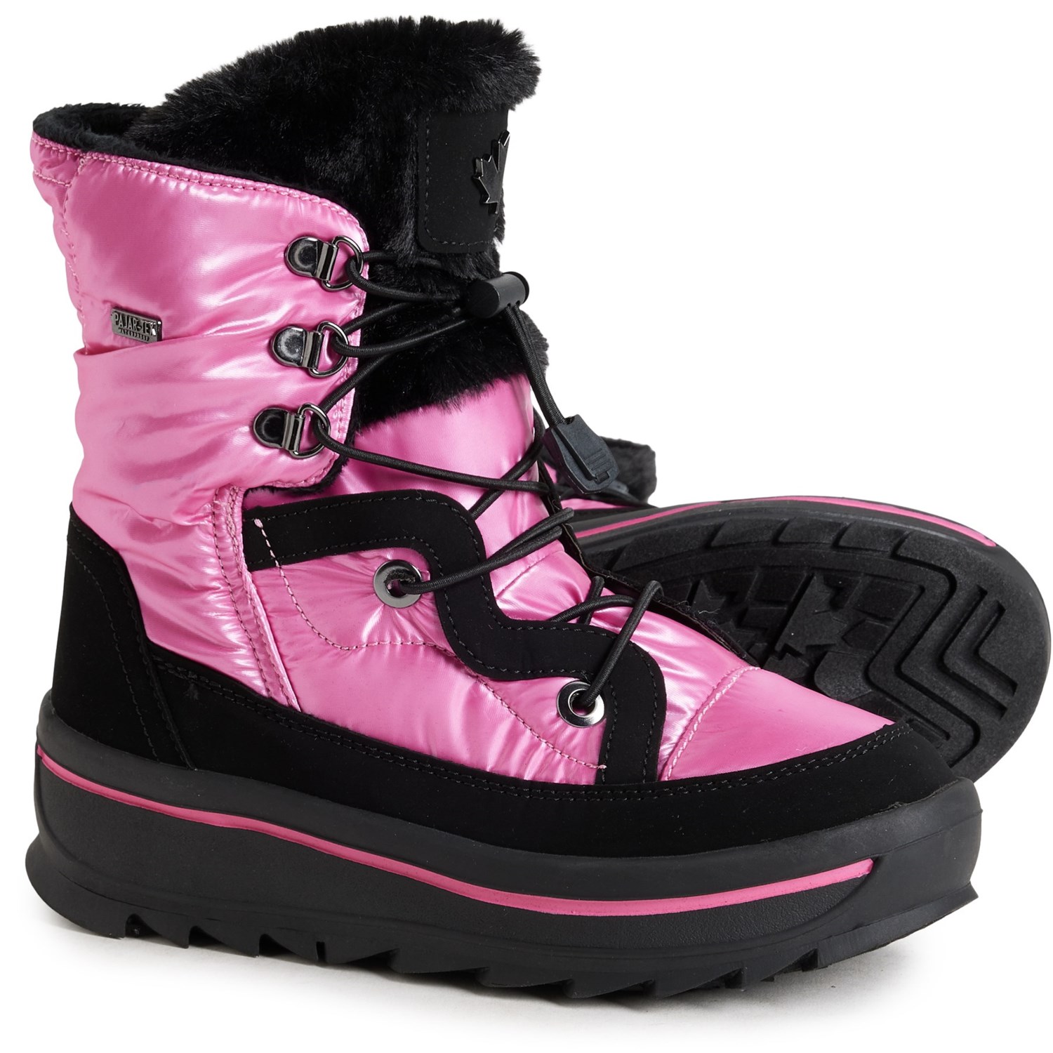 Closeout. She'll be ready for wintry days with Pajar's Tacey low snow boots, crafted in shiny quilted fabric with waterproof breathable Pajar-Tex protection, low-bulk insulation, a soft fleece lining and grippy lugged outsole.
