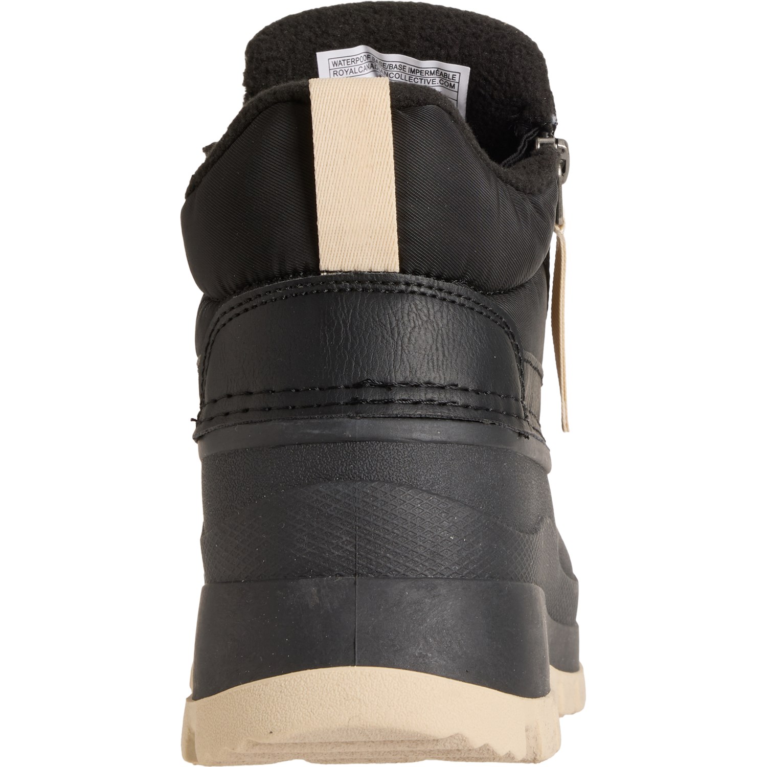 Excess. Take on wintry streets in comfort with Royal Canadian's Flord snow boots, crafted in waterproof materials with toasty synthetic insulation, a cozy fleece lining and a grippy lugged rubber outsole.