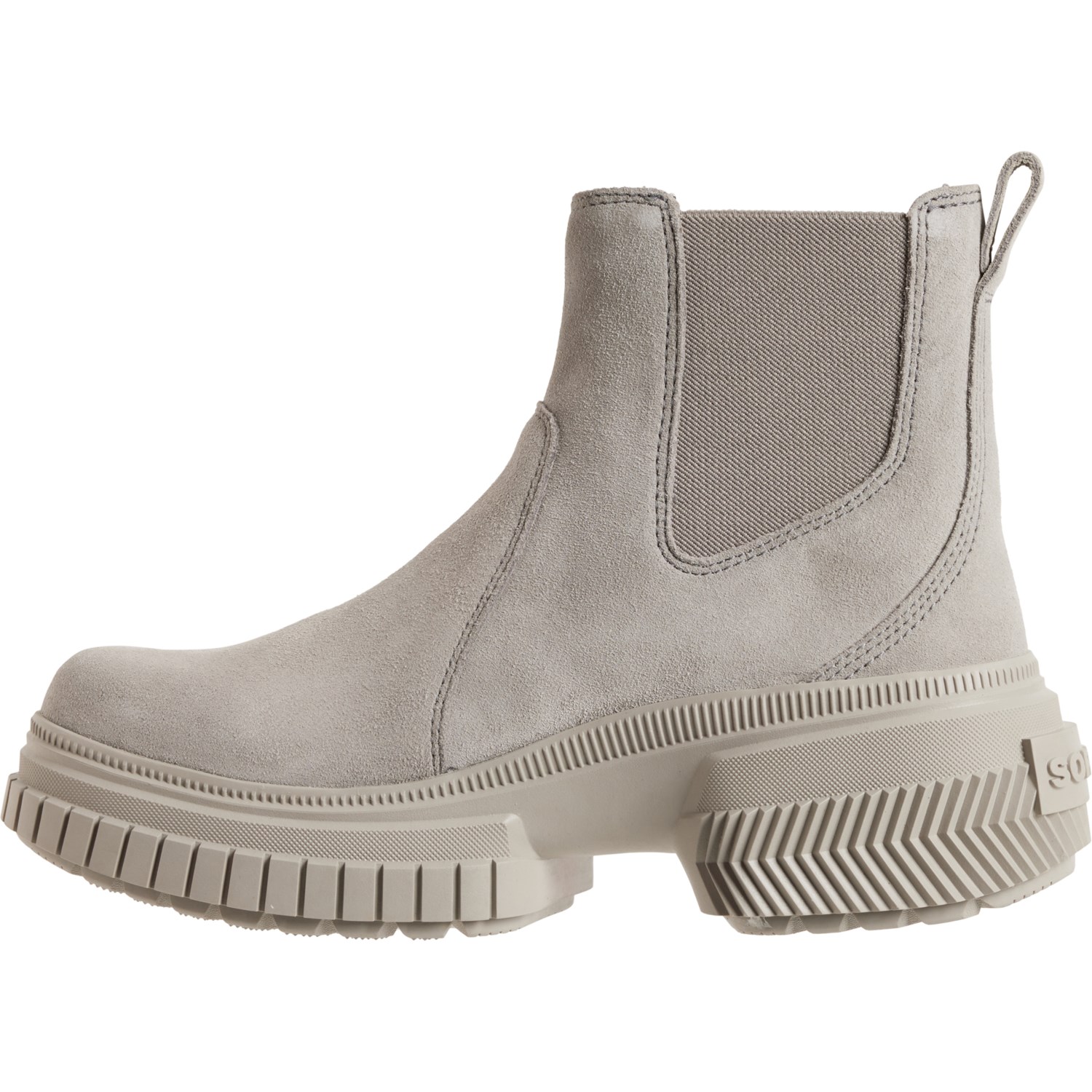 Closeout. Add an edgy vibe to your look with Sorel's Ona Ave Chelsea boots, crafted from waterproof leather with underfoot cushioning and set on a lightweight FEATHERTREAD rubber outsole.