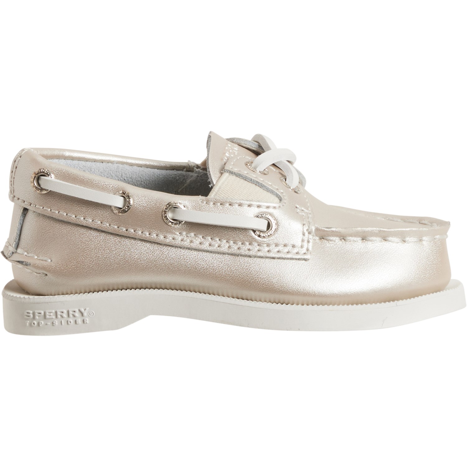 Closeout. Give your kiddo classic style with Sperry's Authentic Original boat shoes, crafted in leather with underfoot cushioning and a traction-worthy non-marking rubber outsole.