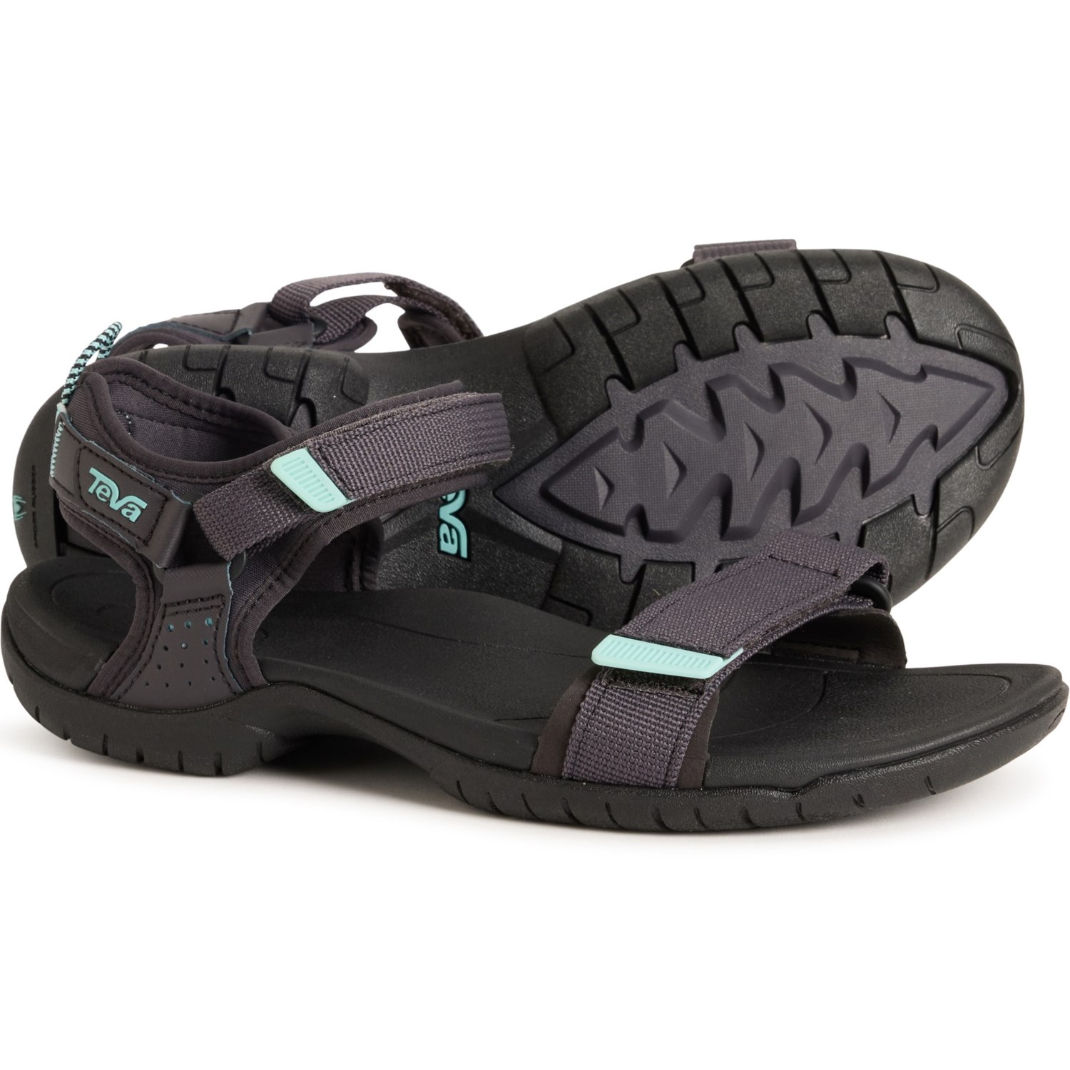 Closeout. Get out and explore in comfort with Teva's Aliciela sandals, featuring fast-drying webbings straps, a molded footbed and grippy, flexible rubber outsole.