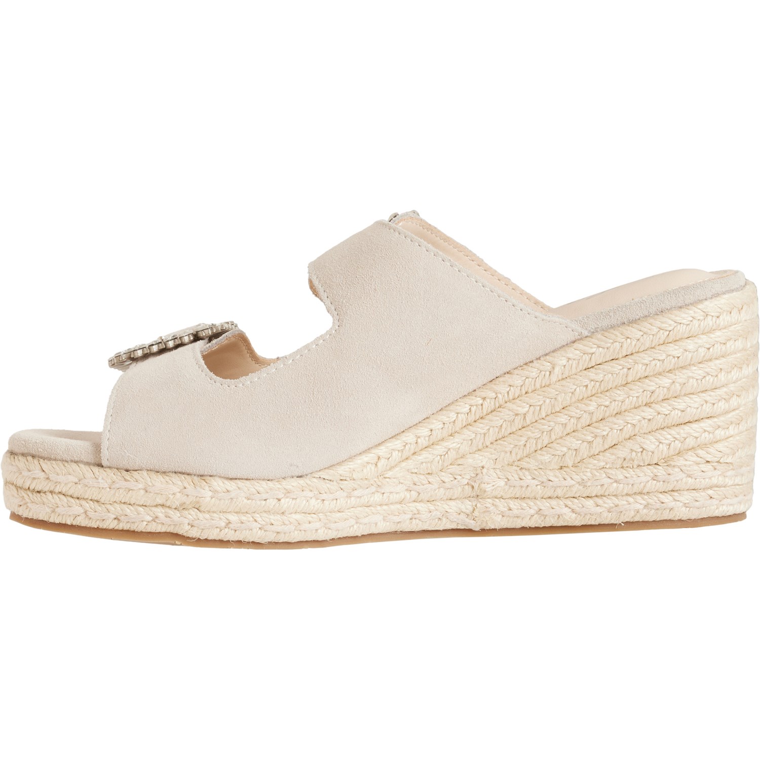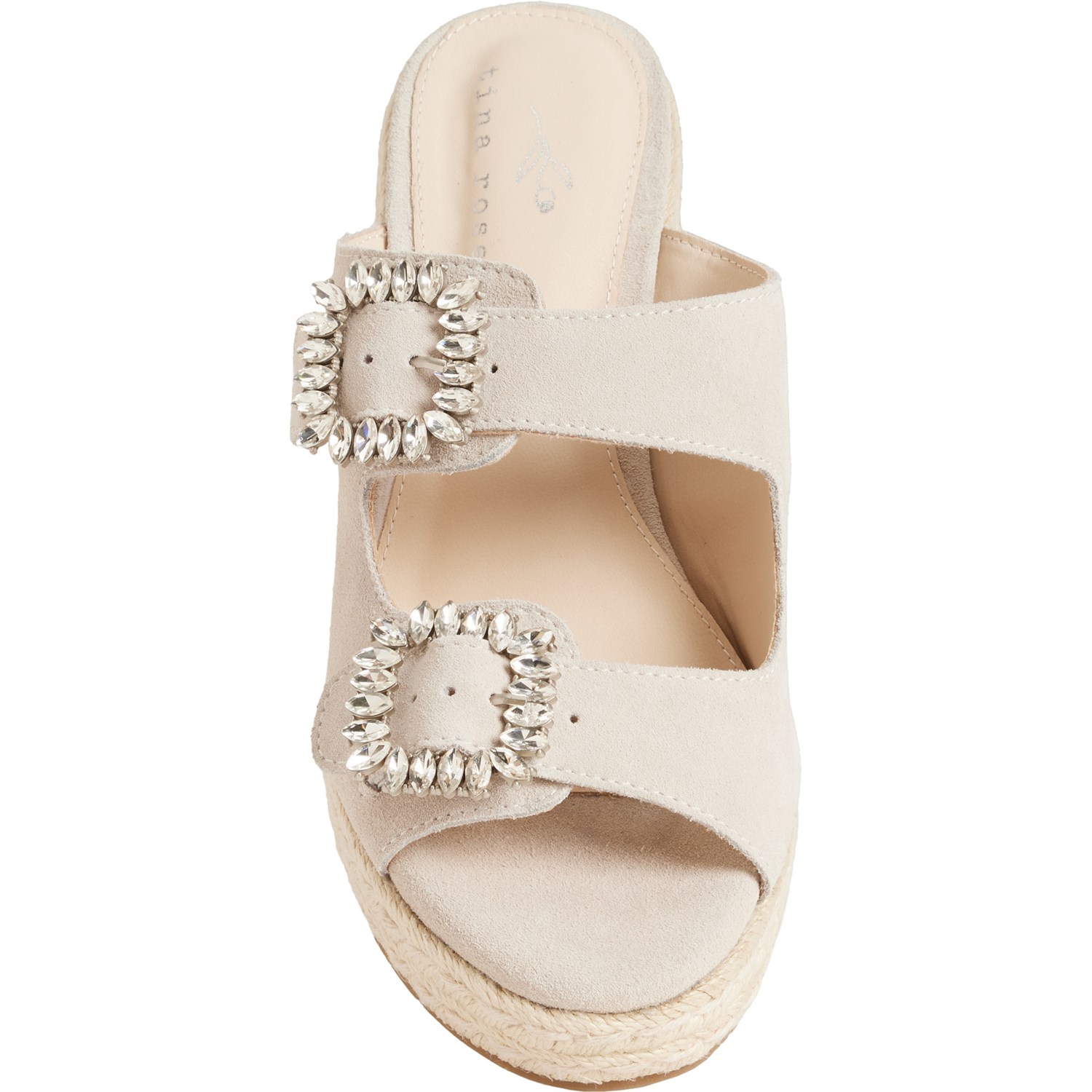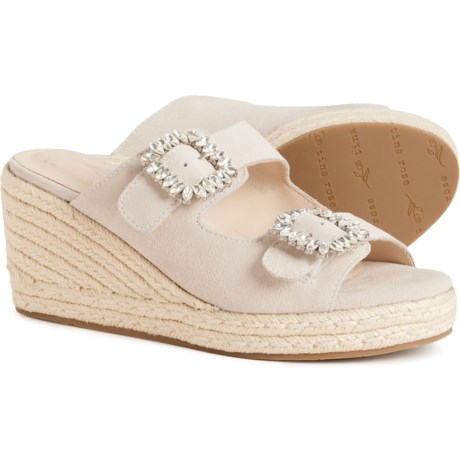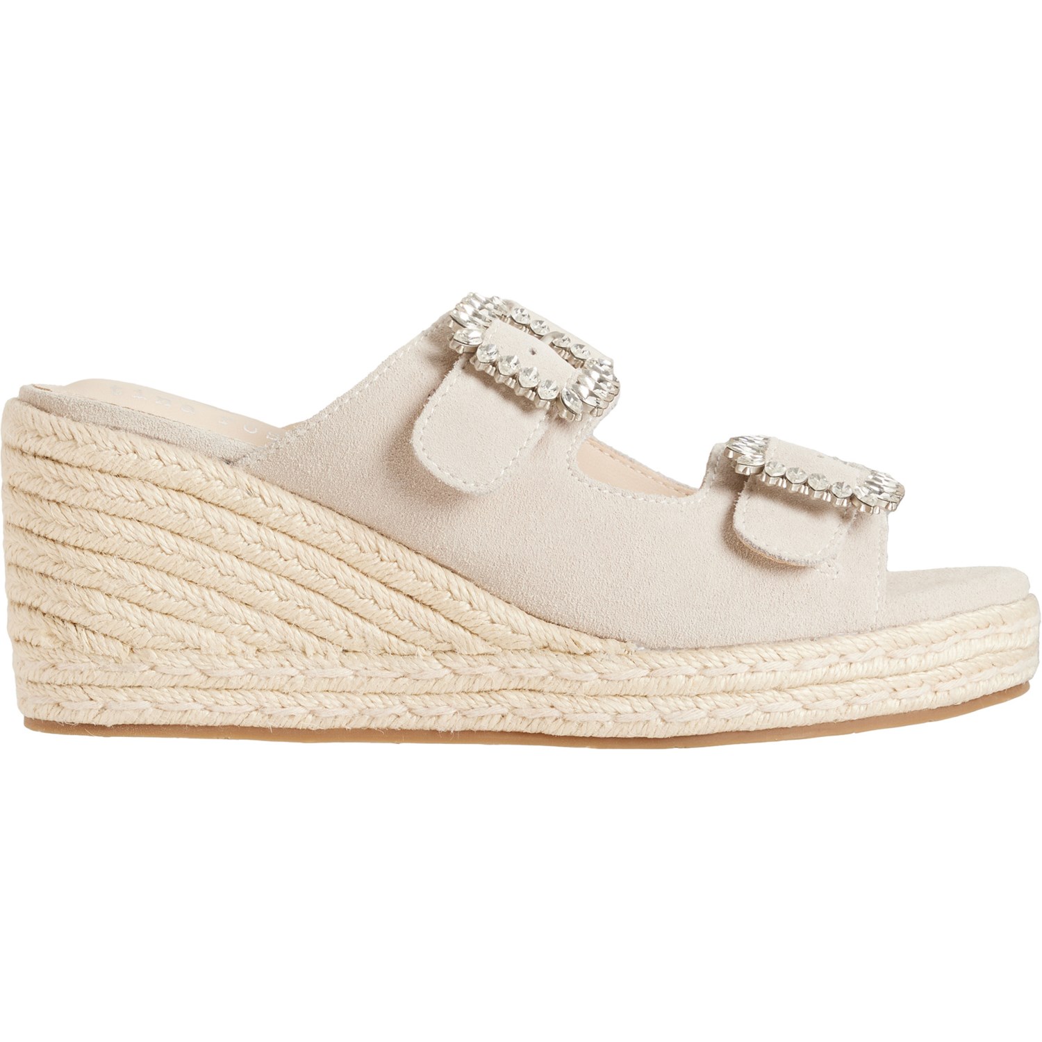 Closeout. Step up your favorite summer looks with these TINA ROSE Sydney double buckle slide sandals, made from supersoft, adjustable suede with a cushioned footbed and flattering wedge heel.