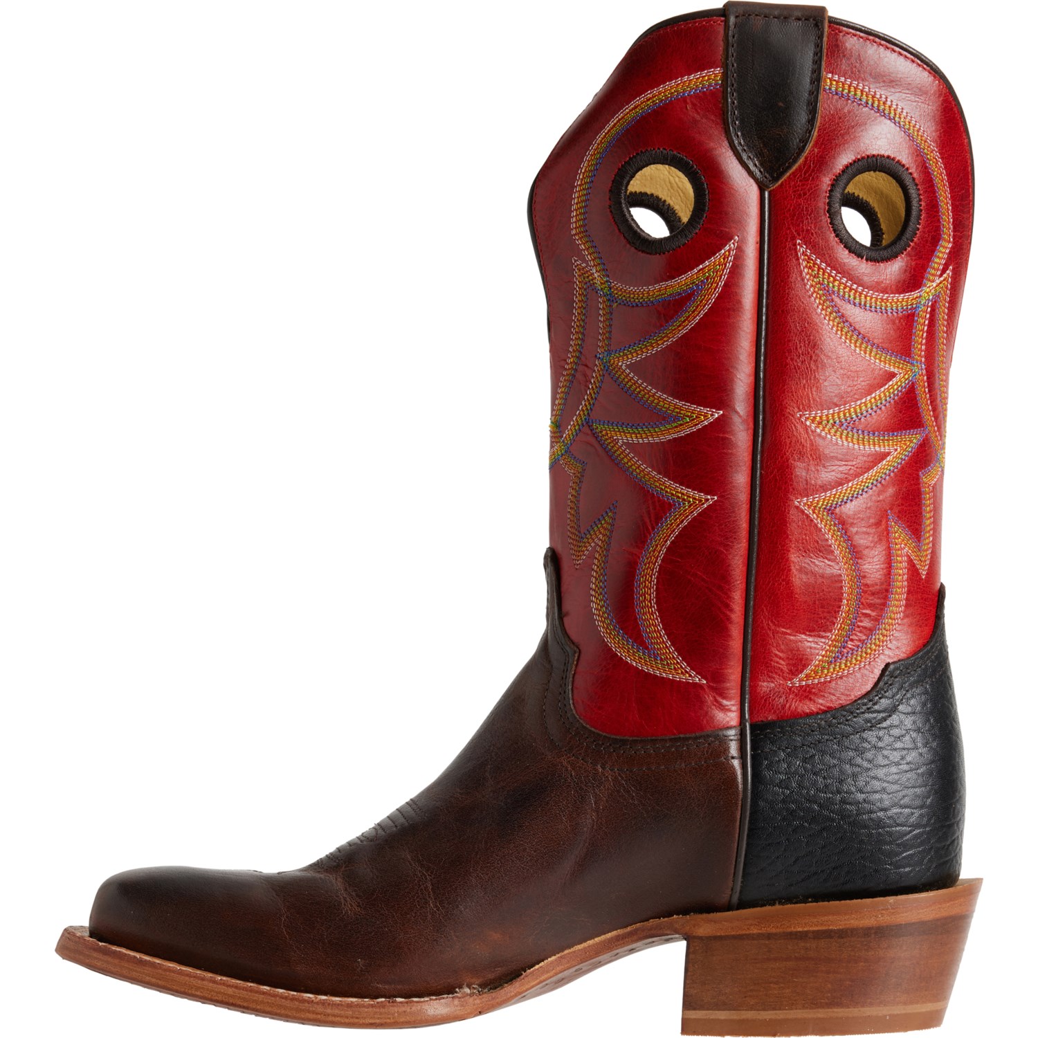 Closeout. From the ranch to the dance hall, you'll love the style and functionality of Tony Lama's Ronan western boots. They're crafted in two-toned cowhide leather with intricate stitching detail, a shock-absorbing footbed and a wide square toe for added comfort with extended wear.