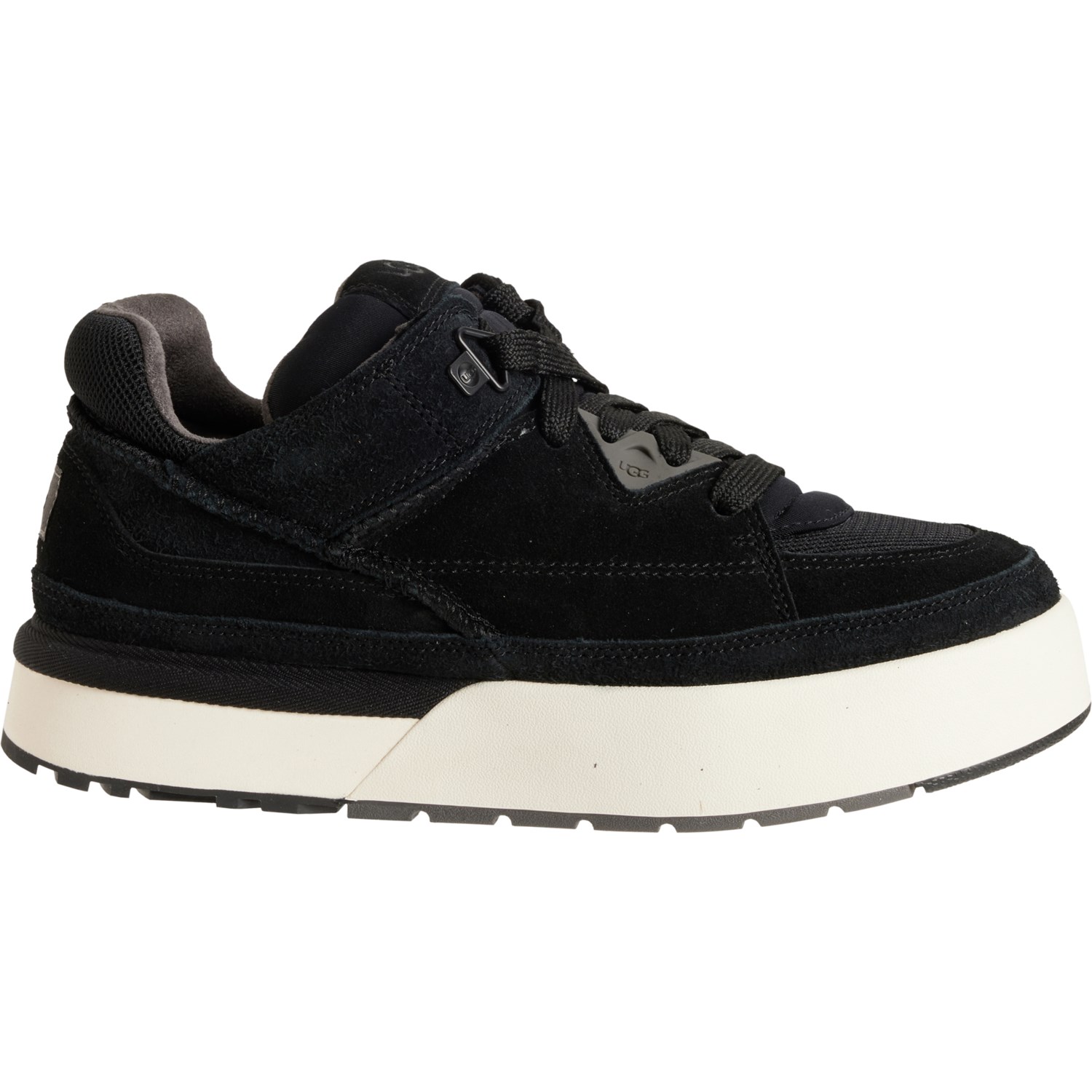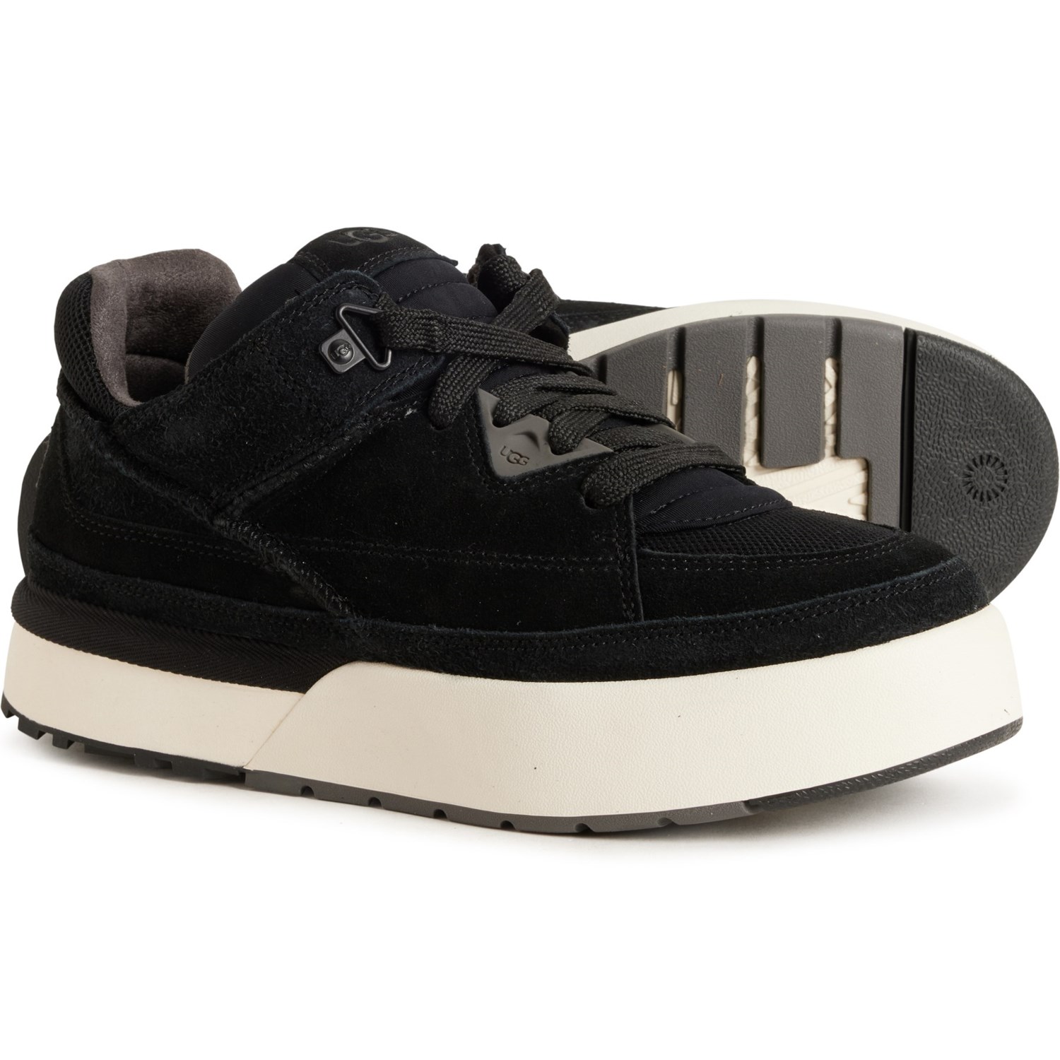 Closeout. Step out in sporty, street-ready style with these UGG® Goldencush sneakers, crafted in soft suede with a cushioned footbed, platform midsole and grippy, flexible rubber outsole.