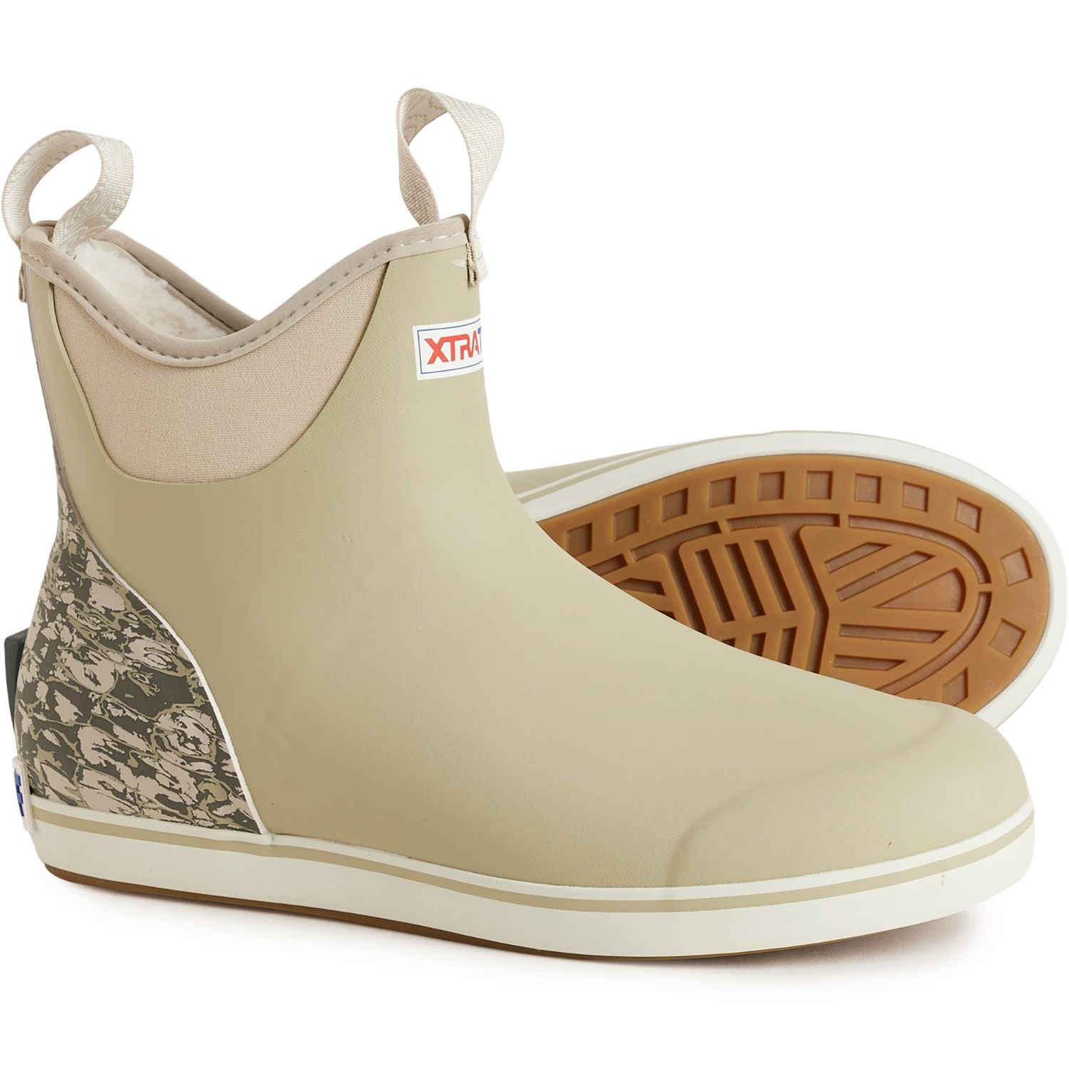 Closeout. From the deck to the shore, you'll step confidently with these XTRATUF Trolling Pack ankle deck boots thanks to their waterproof construction, cozy Sherpa fleece lining, high-rebound footbed and grippy slip-resistant outsole.
