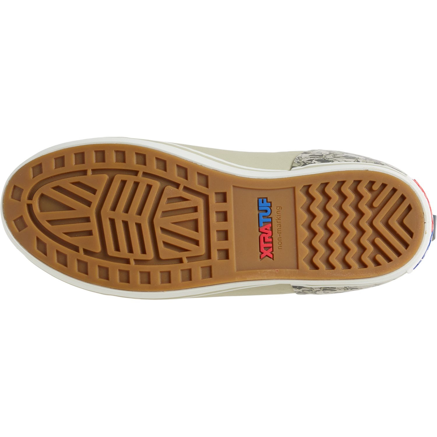 - Grippy non-marking rubber outsole with chevron lugs for slip-resistant traction