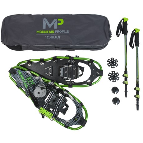 Closeouts. Head for the powder and start blazing your own trail with Yukon Charlie's Mountain Profile snowshoe kit. Perfect for the weekend warrior, this kit includes easy-fitting snowshoes and adjustable trekking poles.